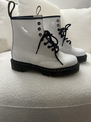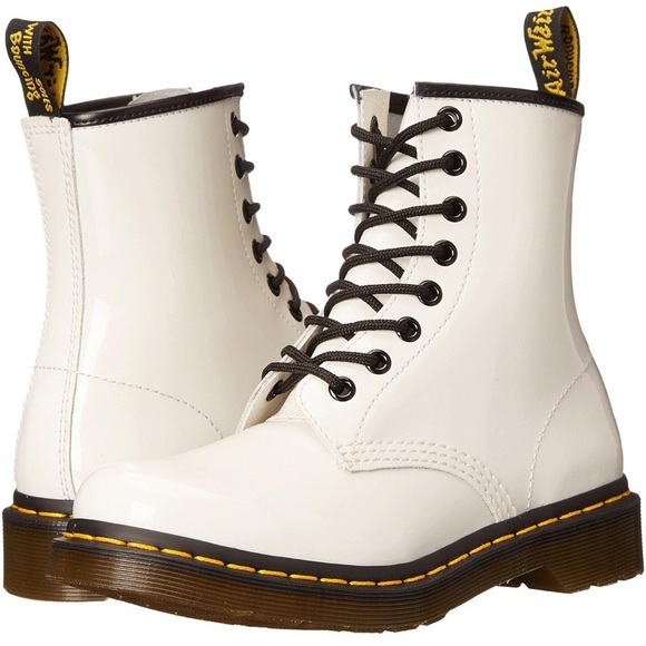 1460 women's patent leather lace up boots white sale