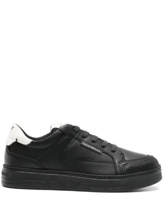 armani black leather trainers sale