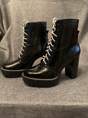 bershka faux patent high heel boots sale