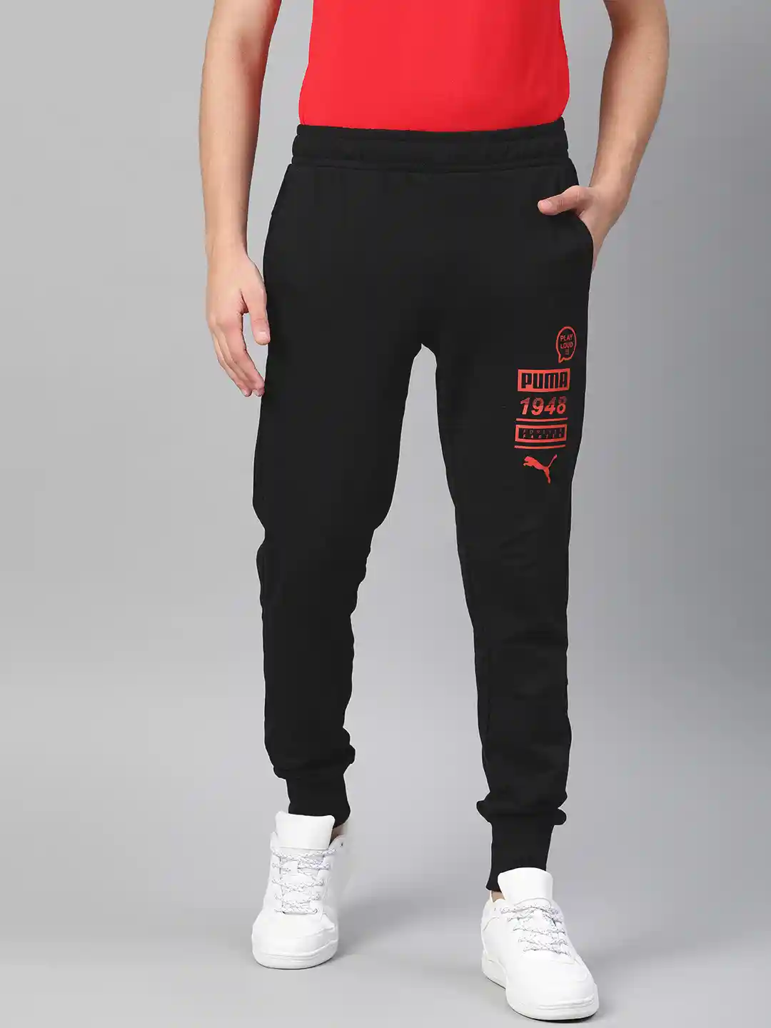 black and red puma joggers sale