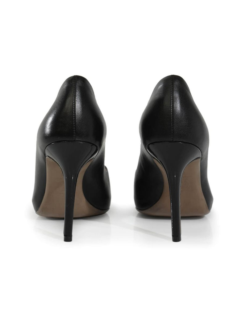 black leather peep toe heels sale