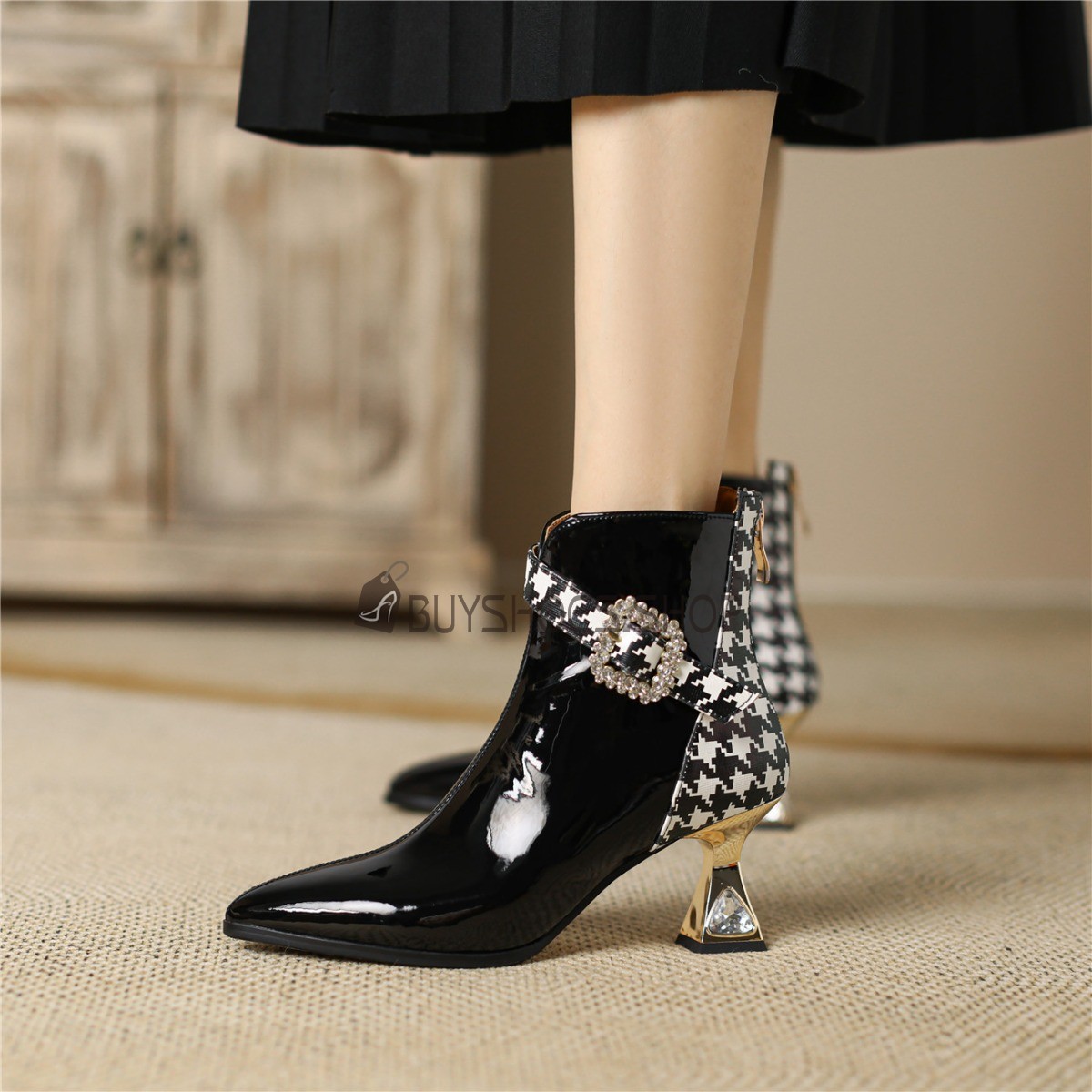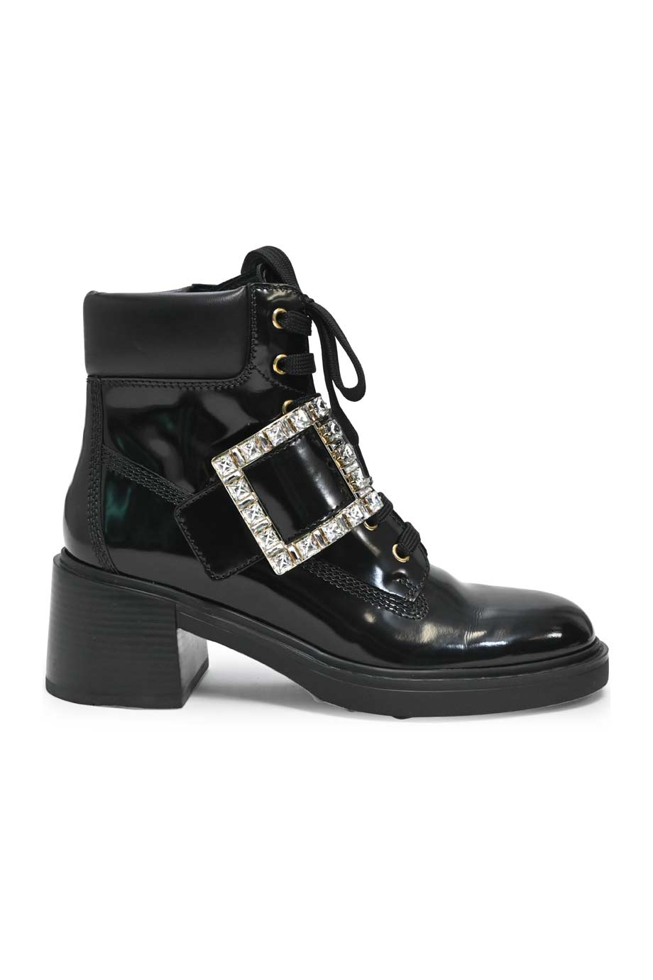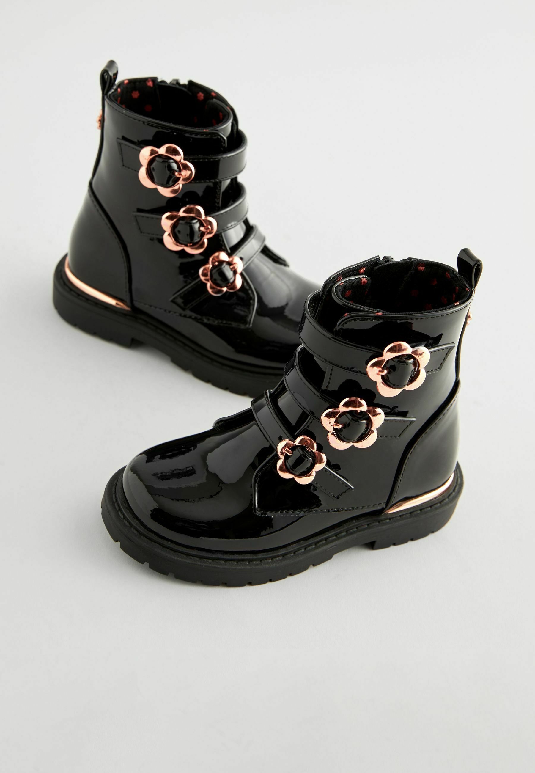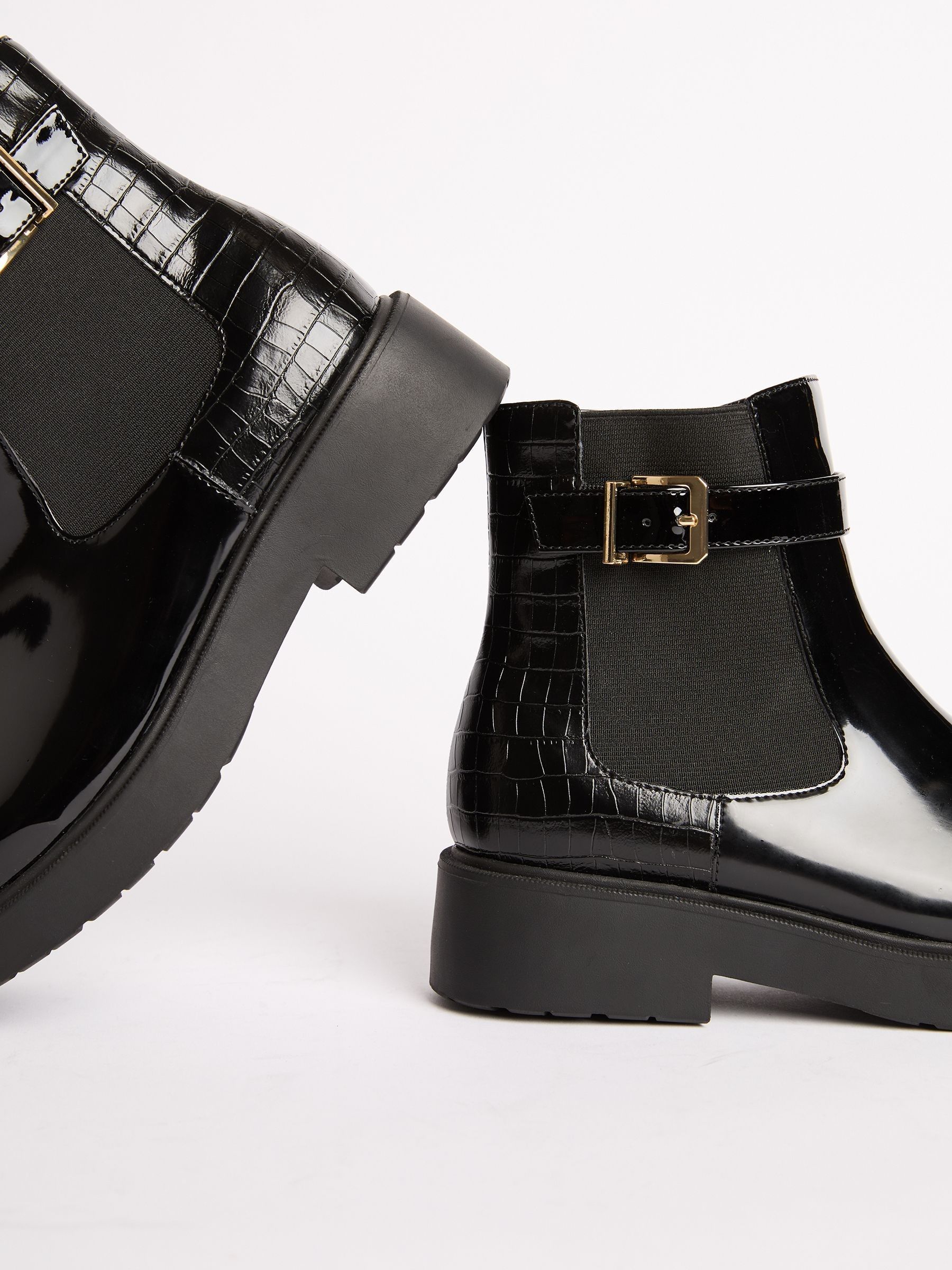 black patent ankle boots with buckle sale