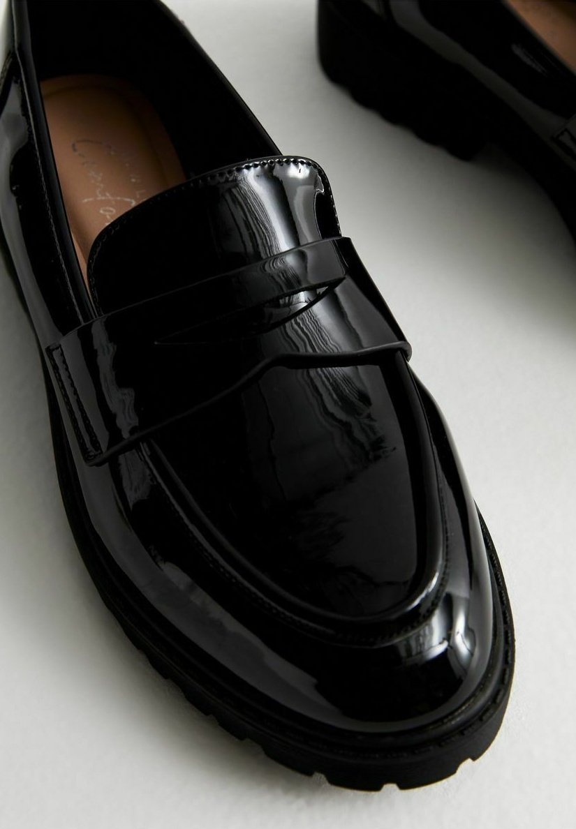 black patent chunky loafers sale