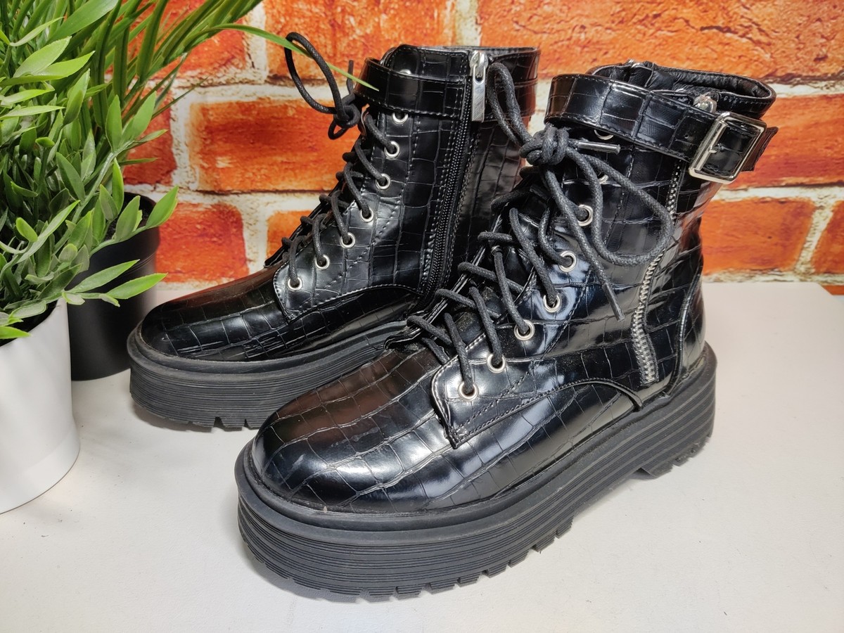 black patent faux croc chunky buckle boots sale