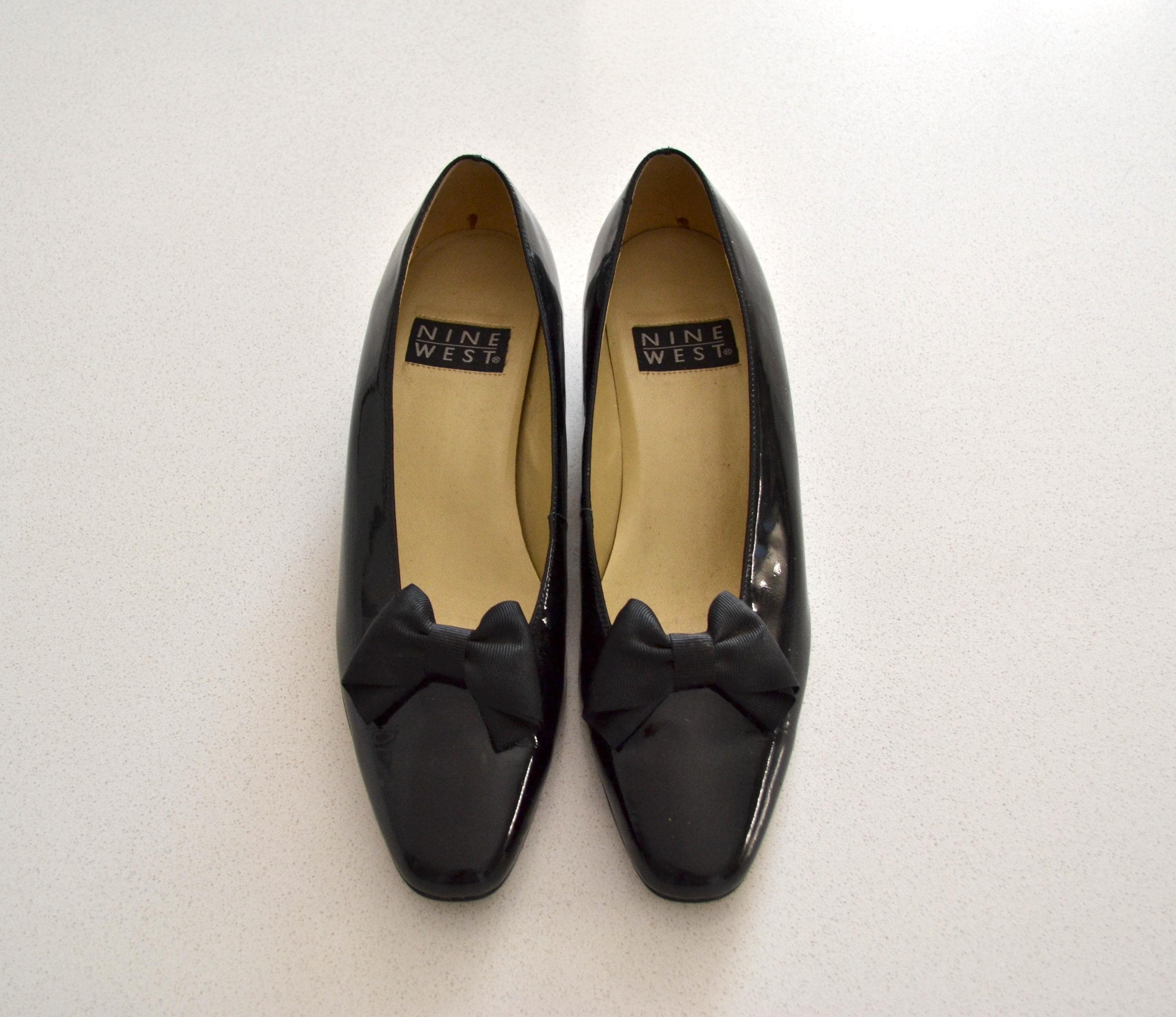 black patent leather flats with bow sale