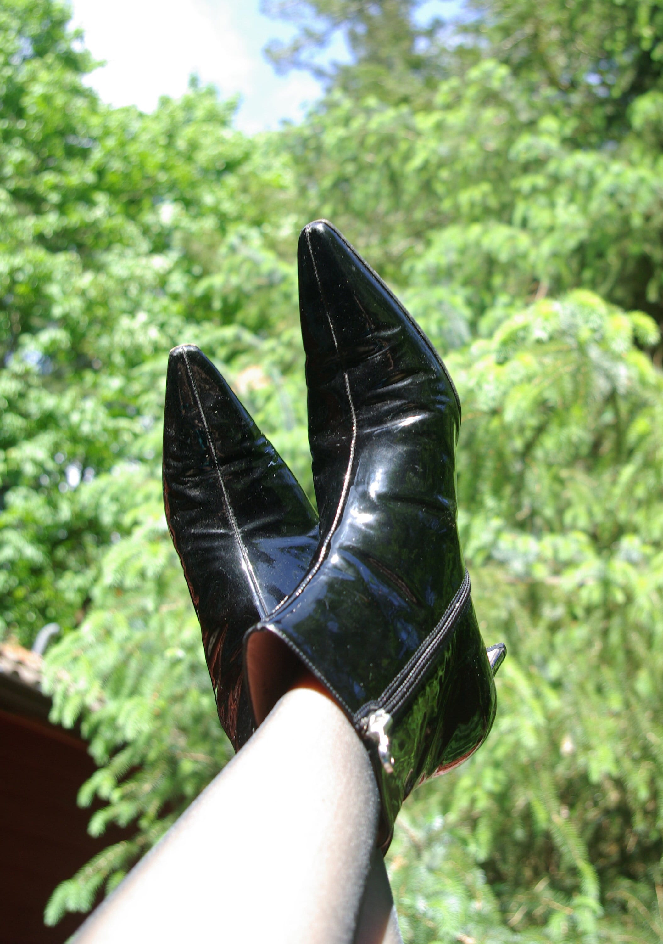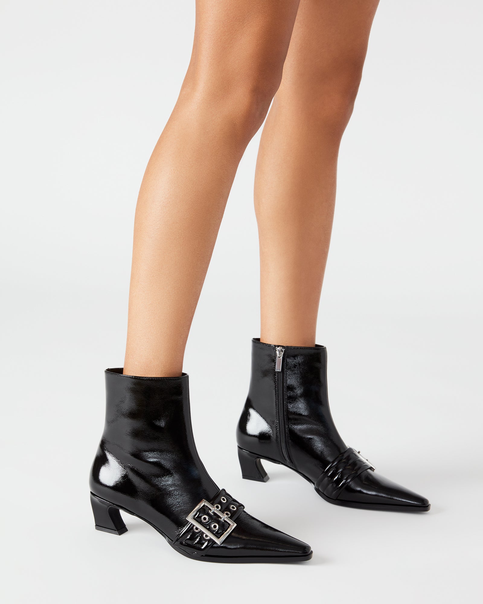 black patent leather pointed toe booties sale