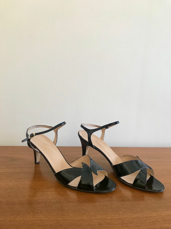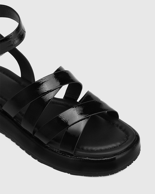 black patent leather strappy sandals sale