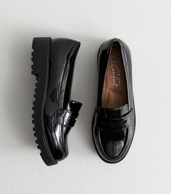 black patent loafers wide fit sale