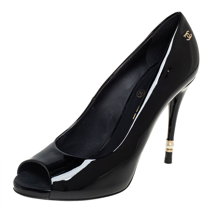 black patent peep toe pumps sale