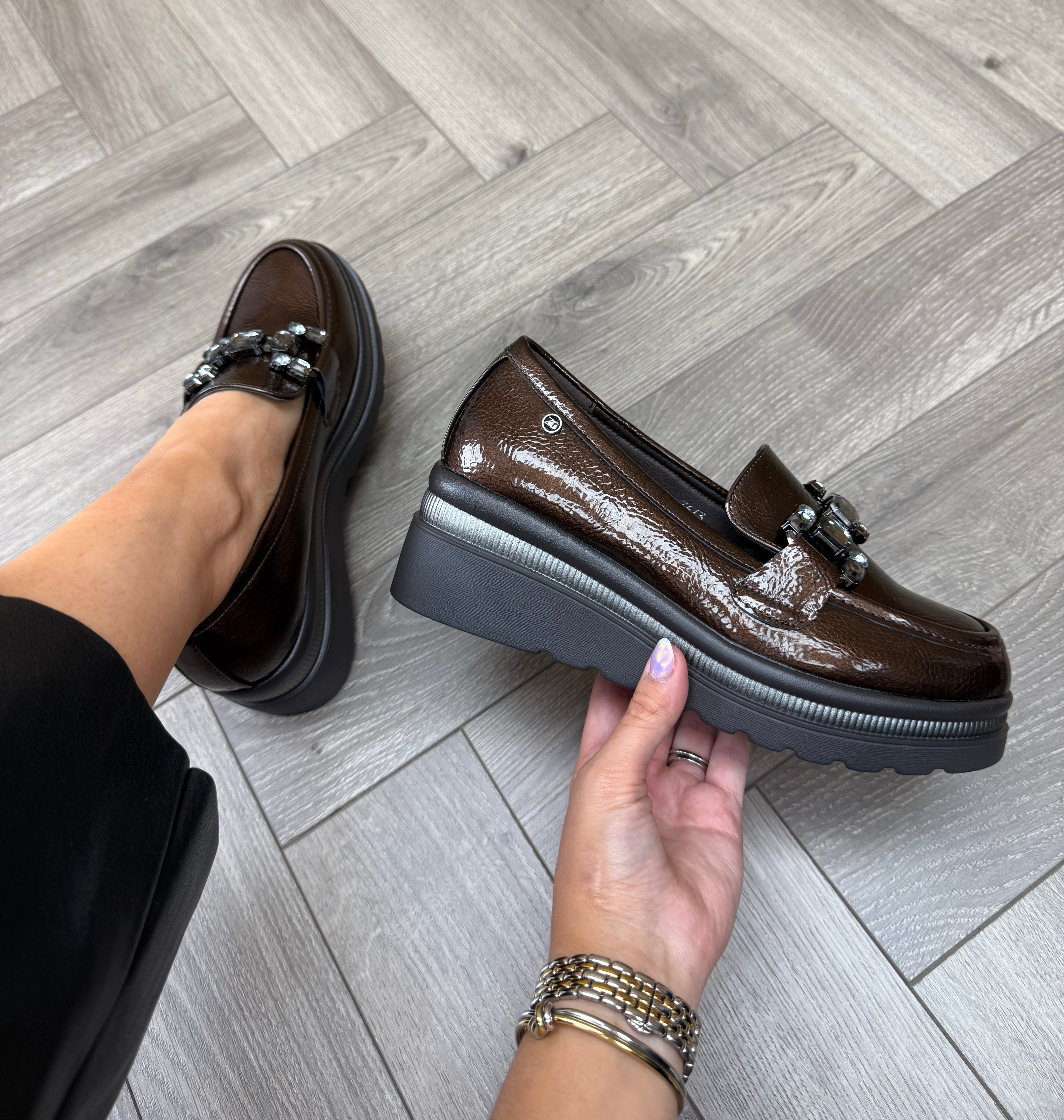 black patent wedge loafers sale