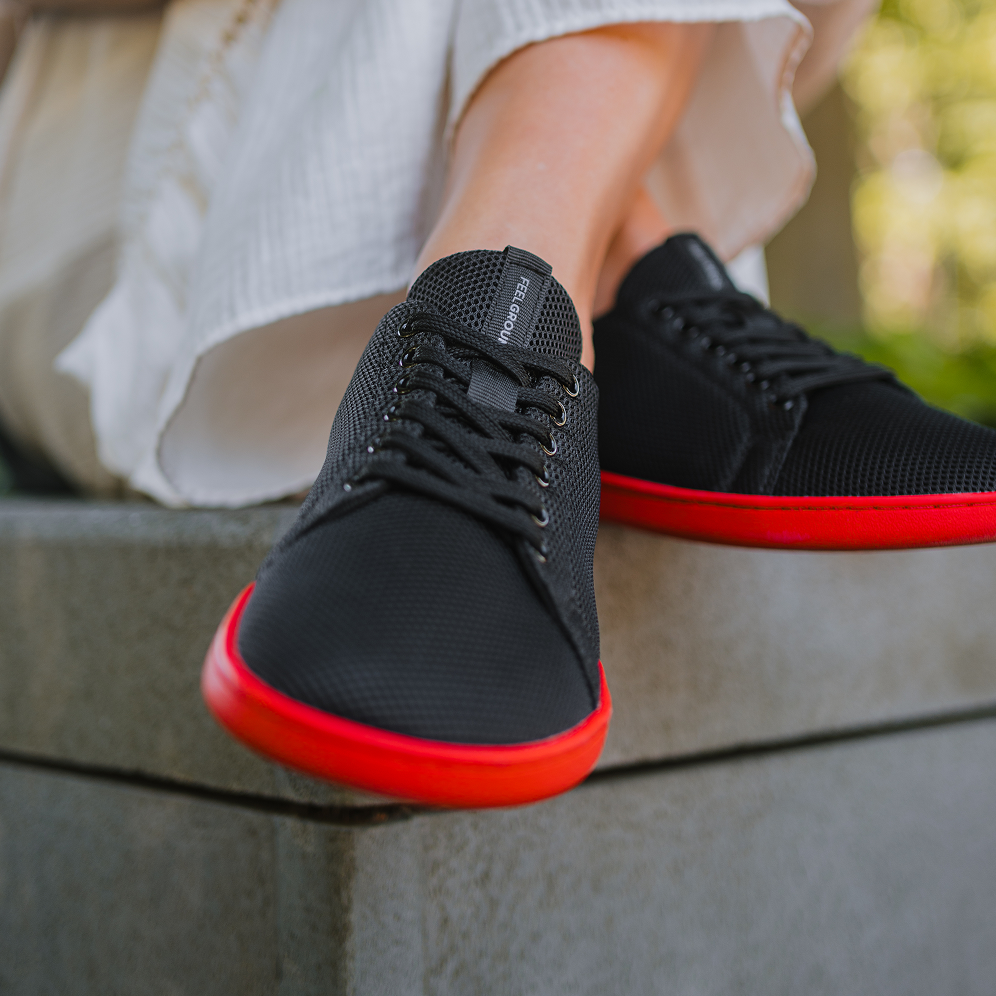 black sneakers with red bottoms sale