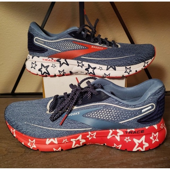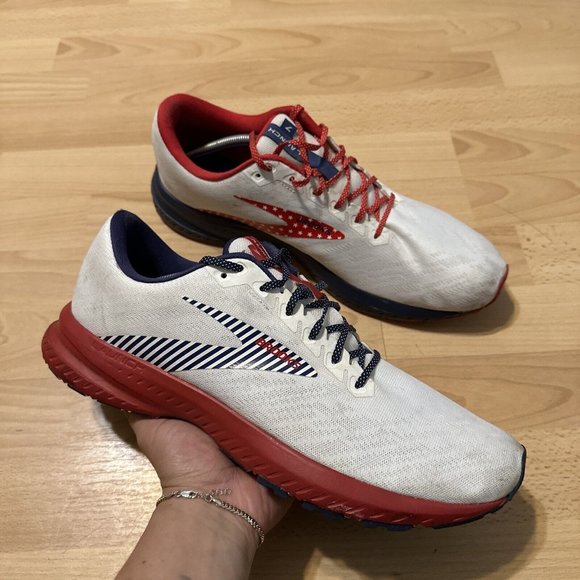 brooks red white and blue tennis shoes sale