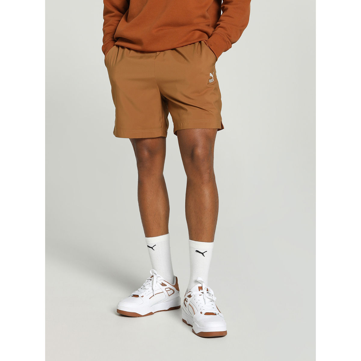 brown puma shorts sale