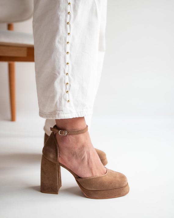brown suede platform shoes sale