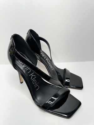 calvin klein black patent sandals sale