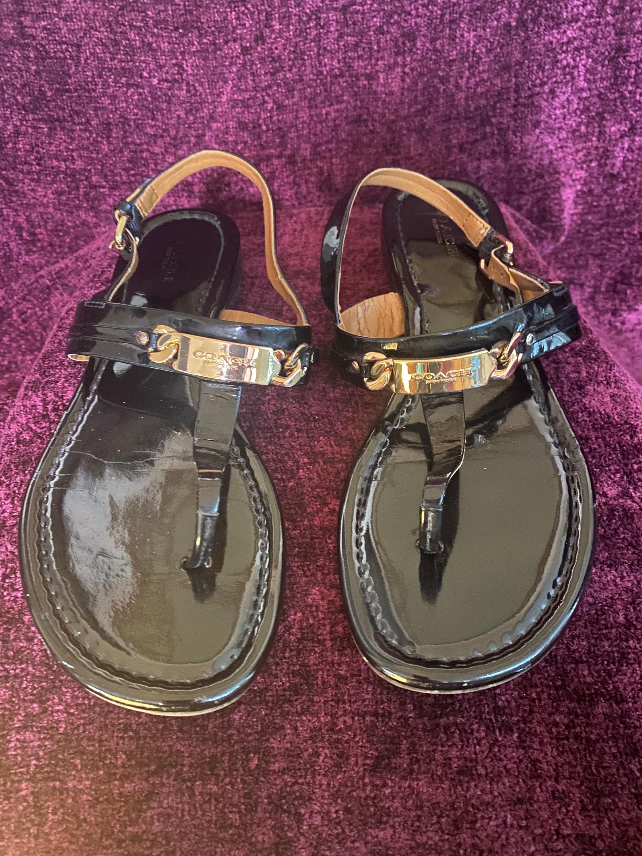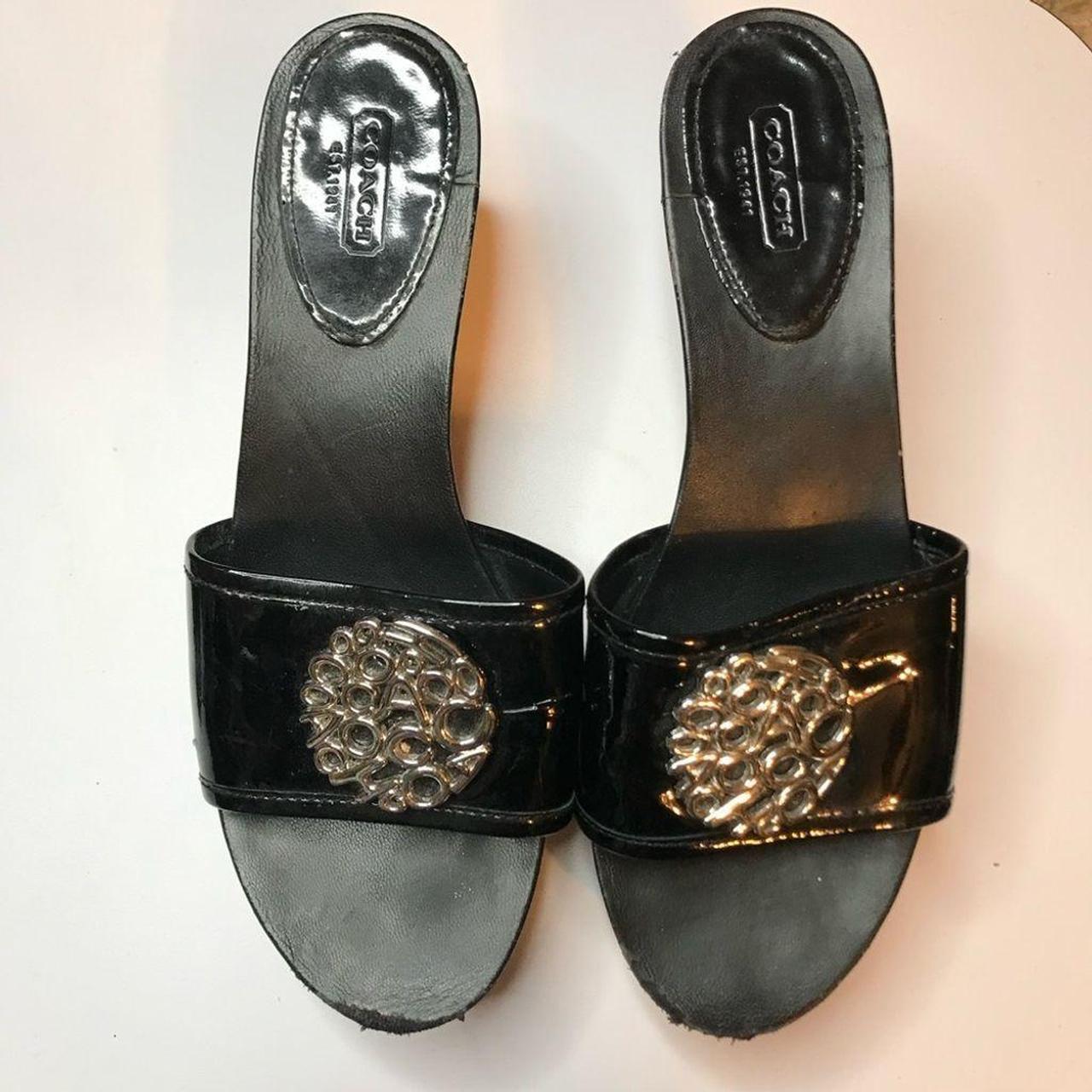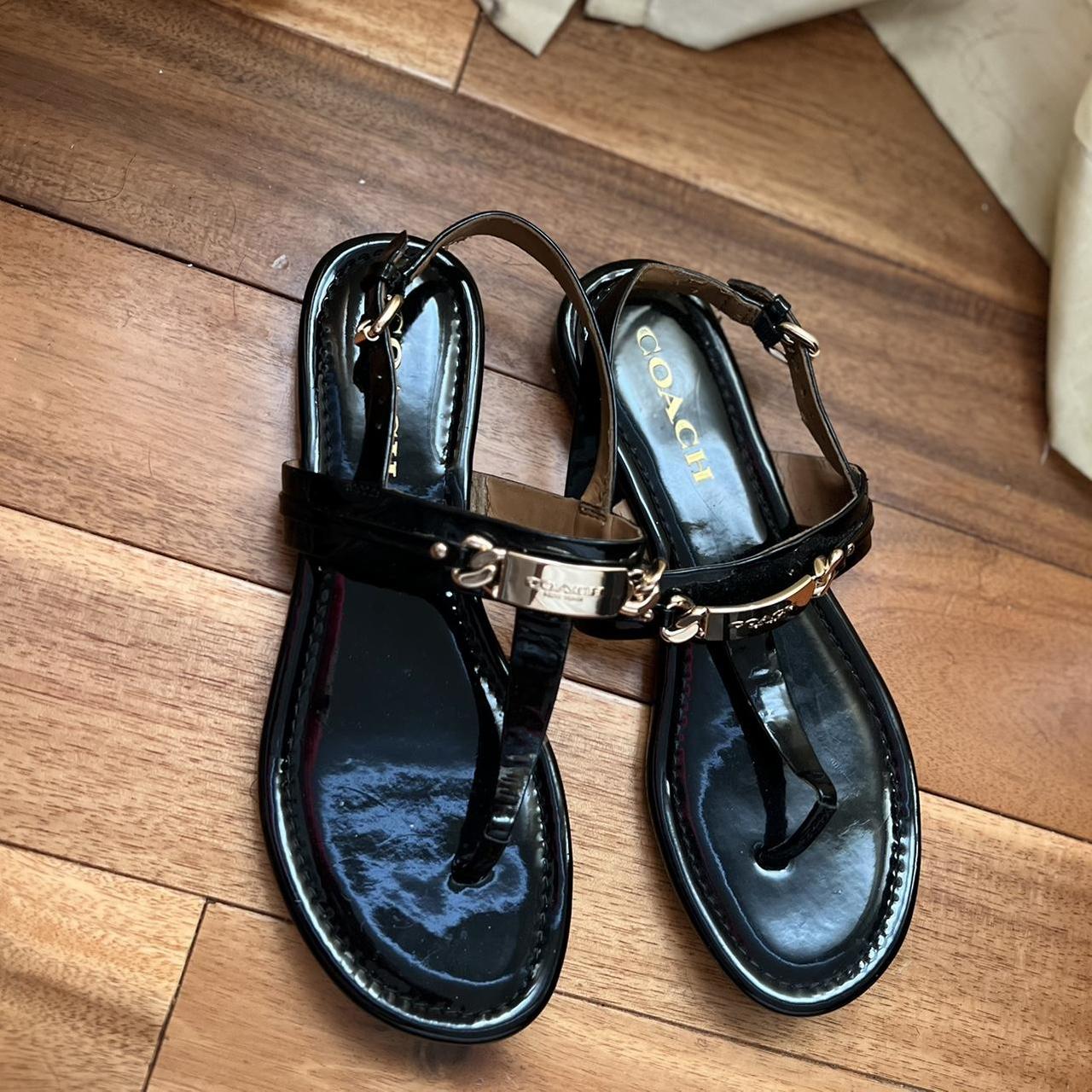 coach black patent leather sandals sale