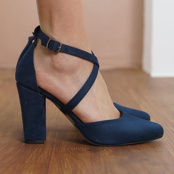 comfortable navy blue heels sale