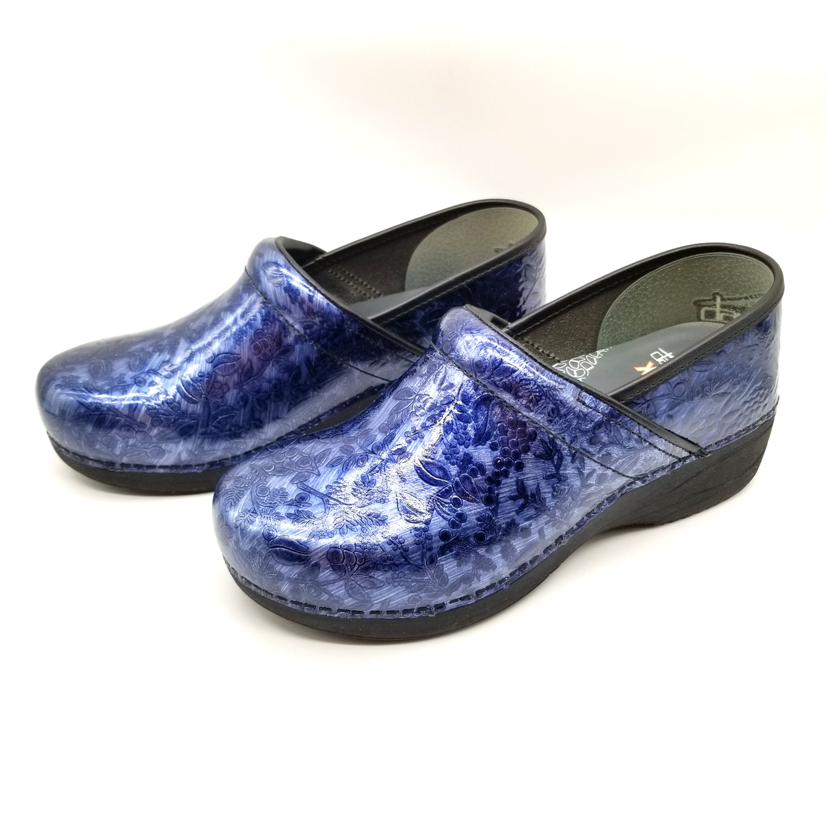 dansko navy patent clogs sale