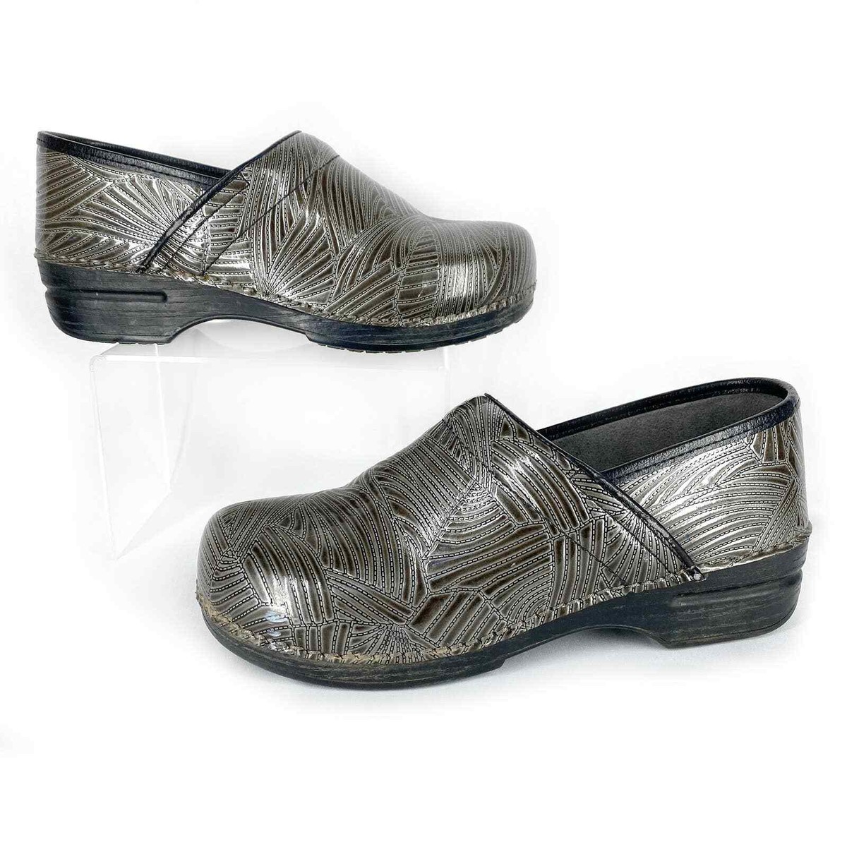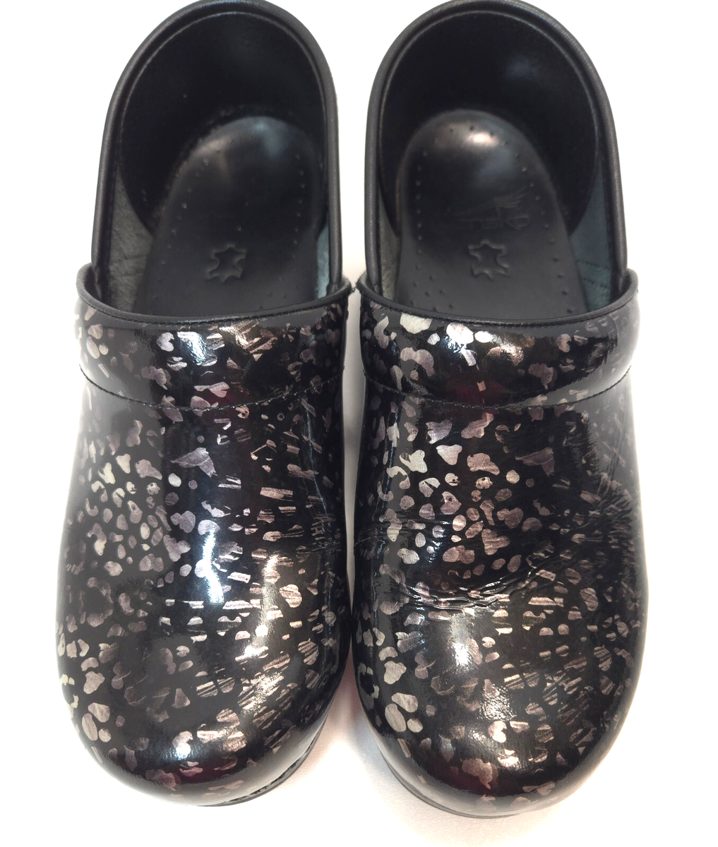 dansko professional pewter leopard patent sale