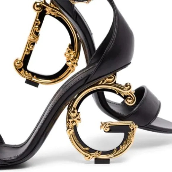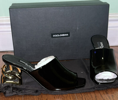 dolce & gabbana patent leather sandals with logo heel sale