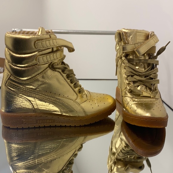 gold puma wedge sneakers sale