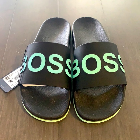 green hugo boss sliders sale