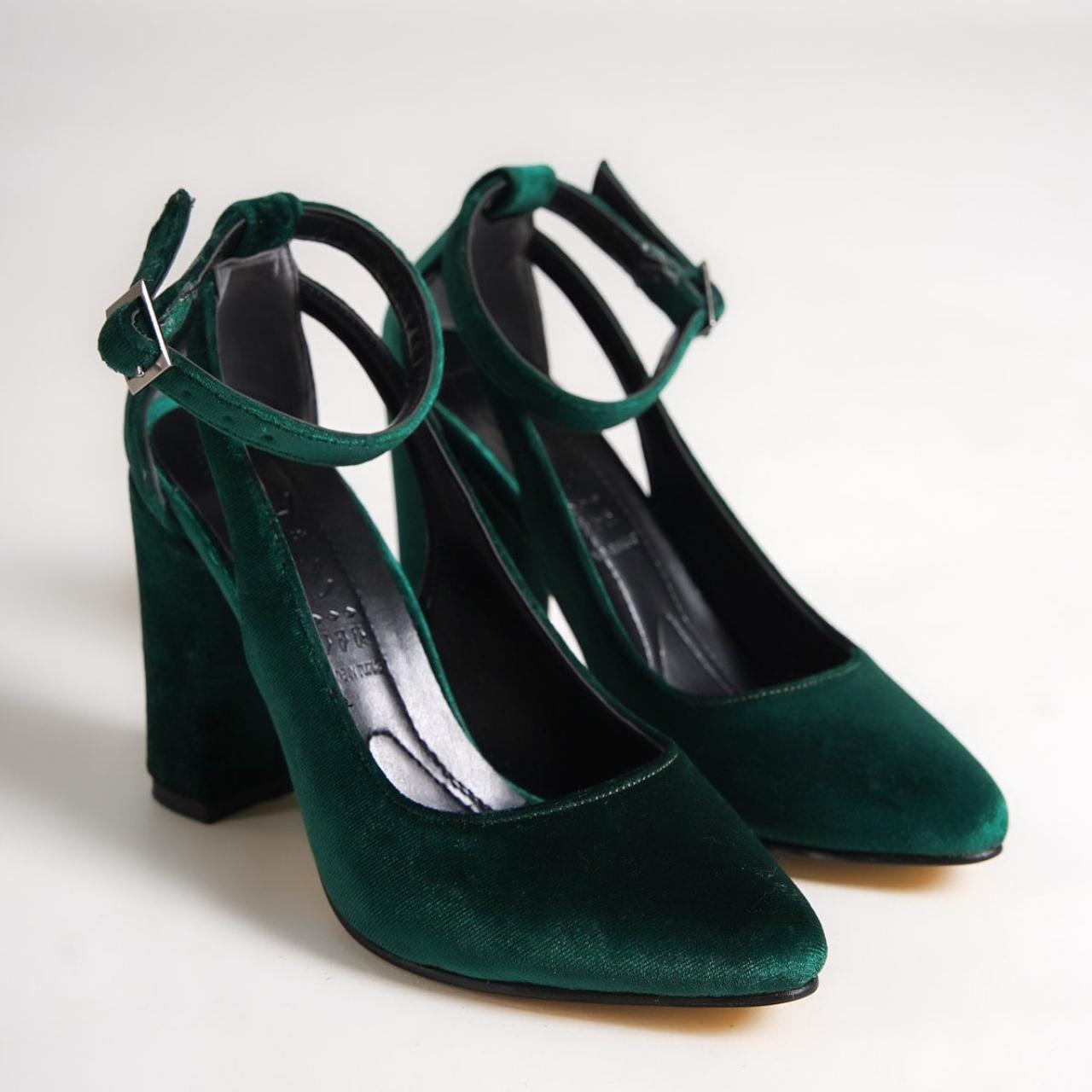 green velvet block heels sale