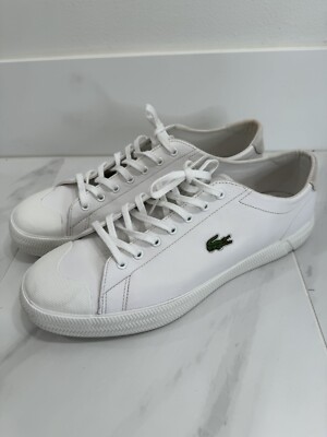 lacoste mens riberac leather trainers white dark blue sale