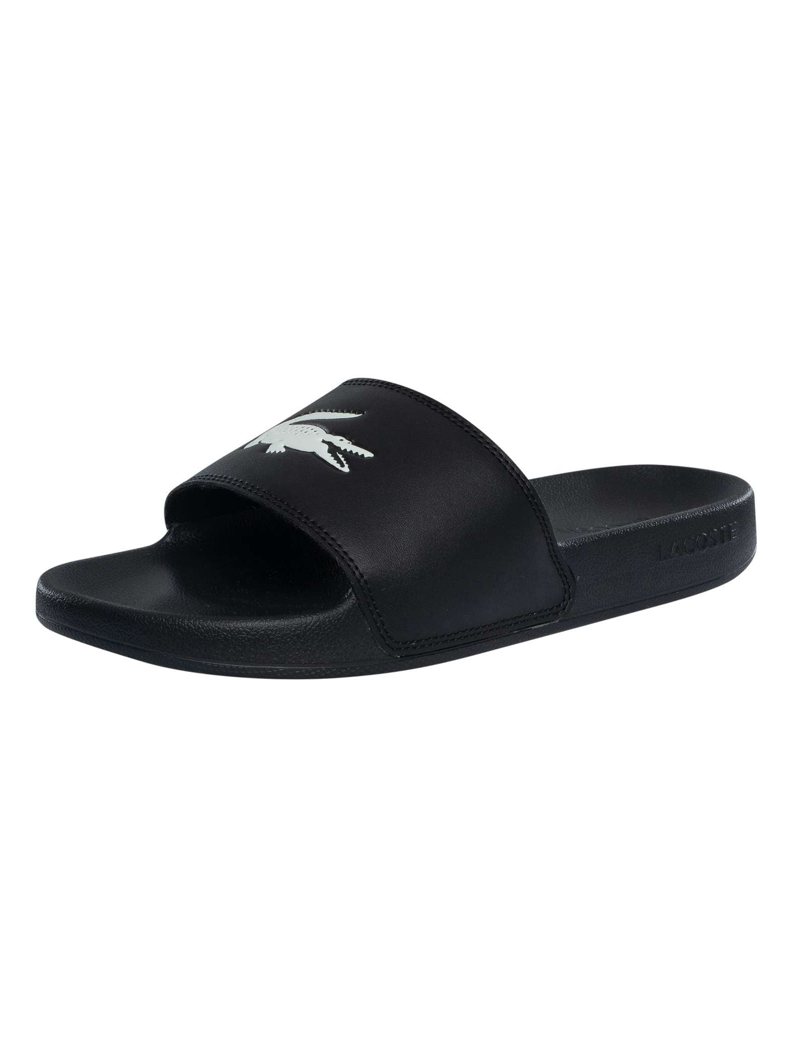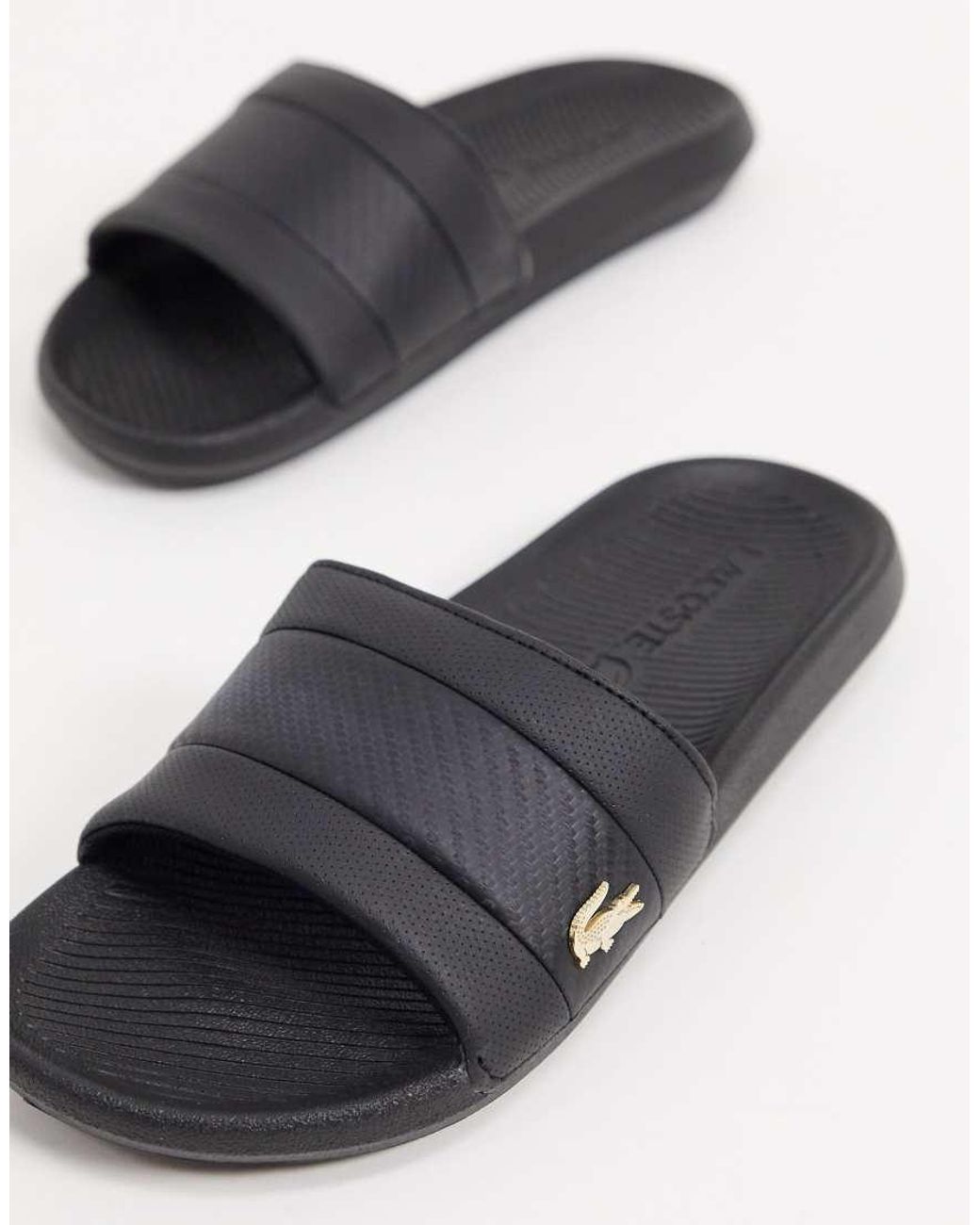 lacoste sliders black sale