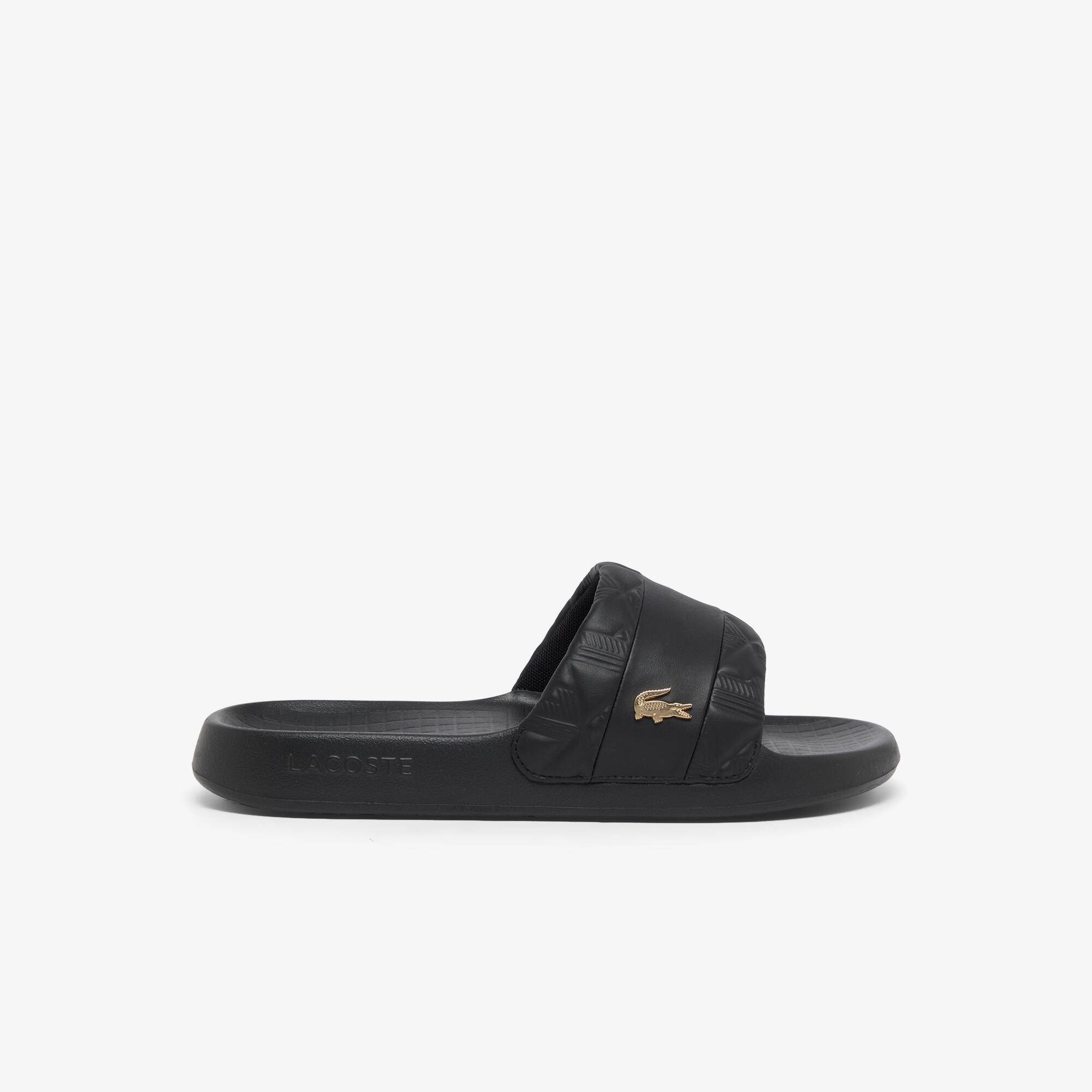 lacoste slides black and gold sale