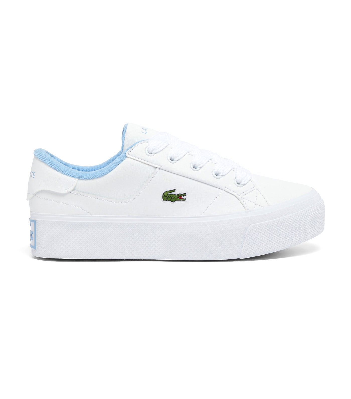 lacoste white and blue trainers sale