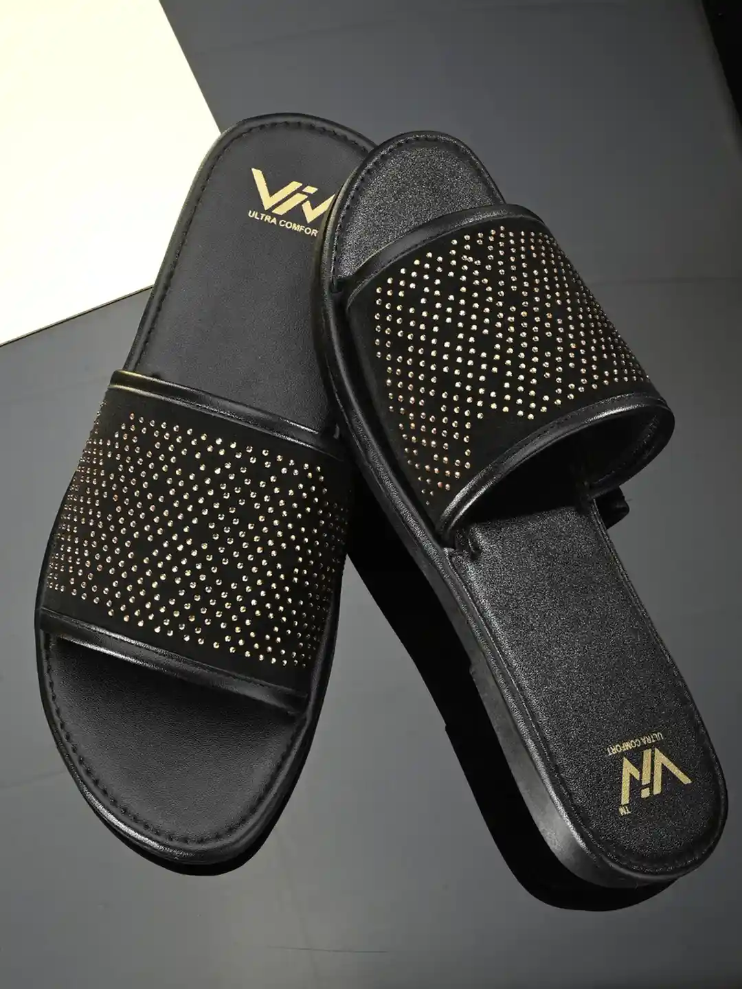 mens black and gold sliders sale