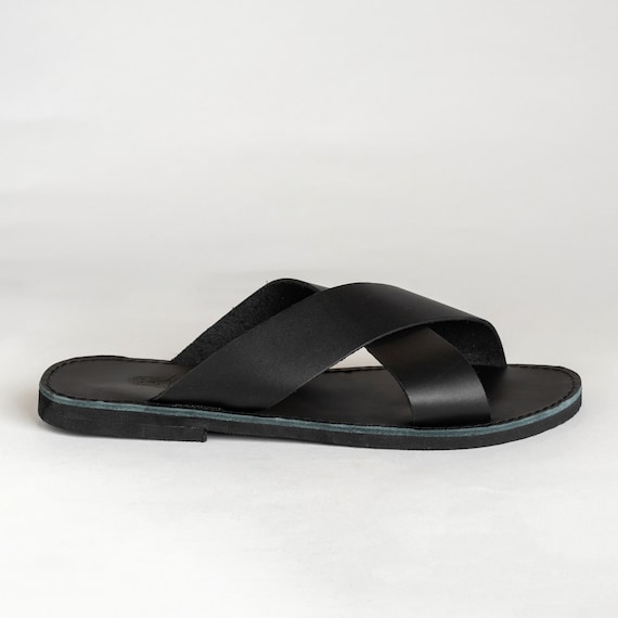 mens black leather slide sandals sale