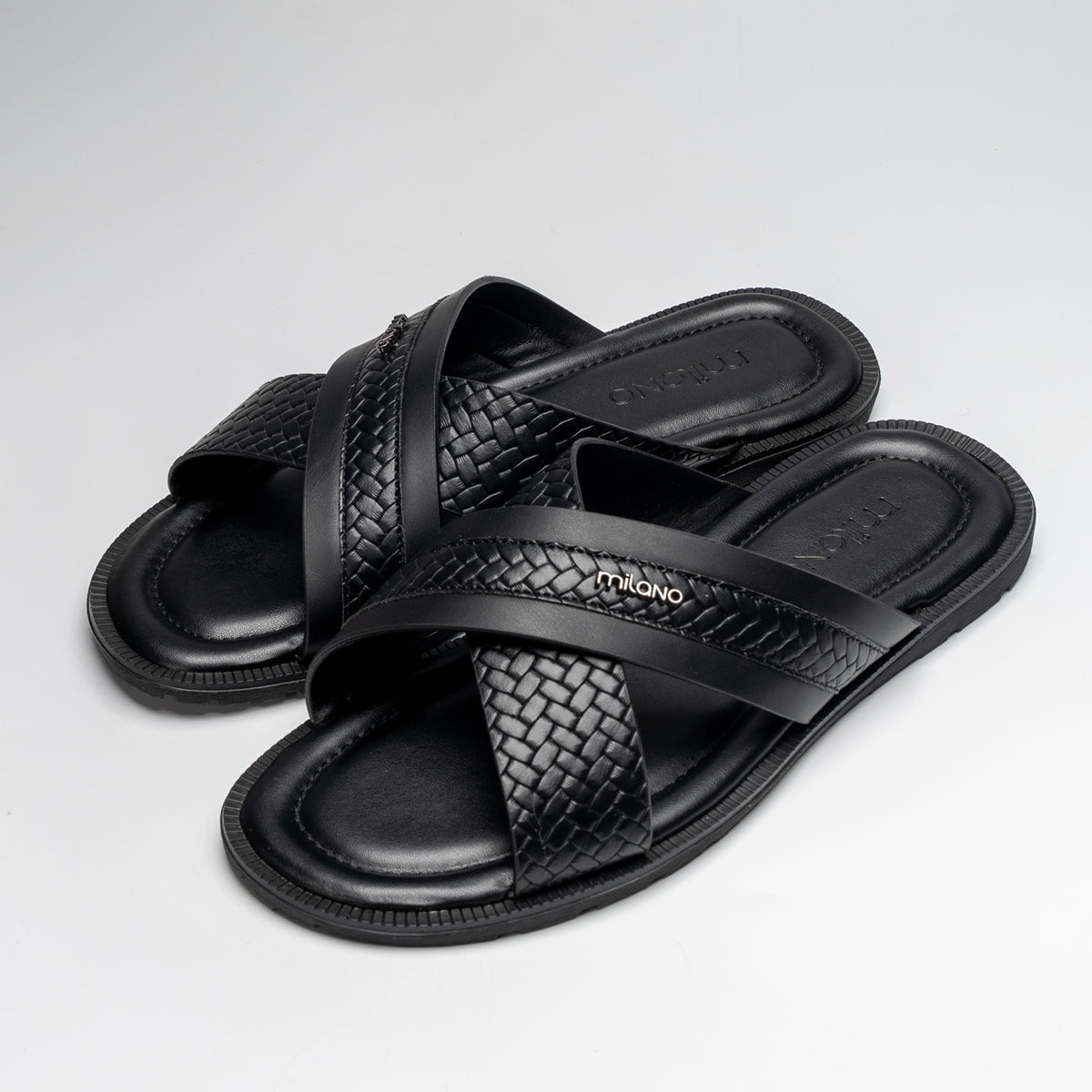 mens black leather slides sale