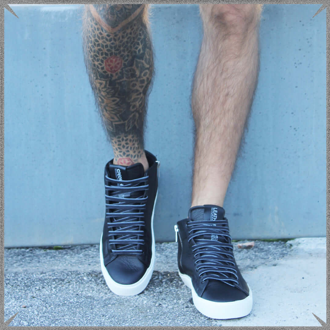 mens black mid top trainers sale