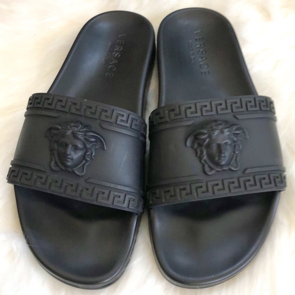mens black versace sliders sale