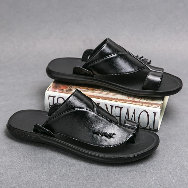 mens leather slide slippers sale