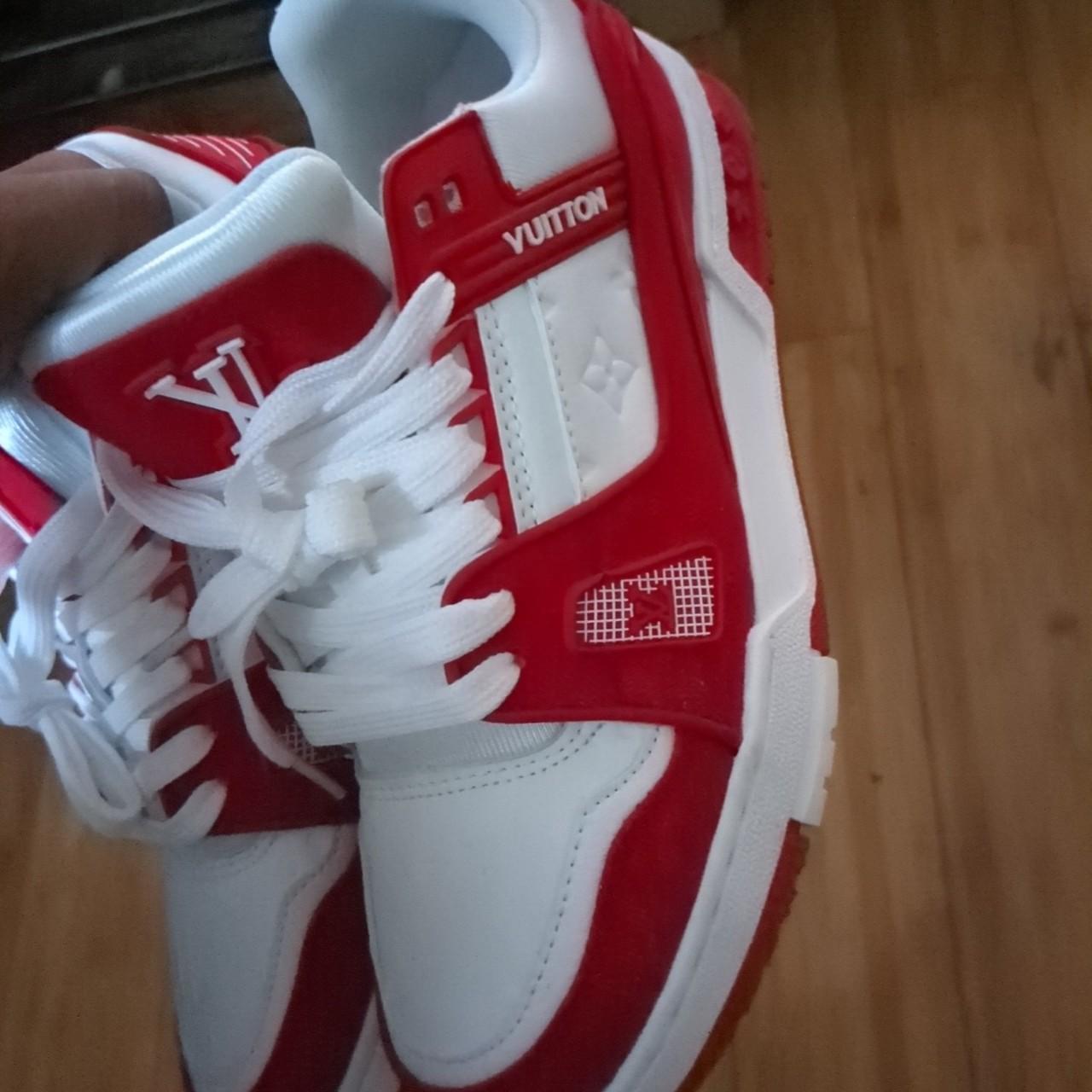mens red and white trainers sale