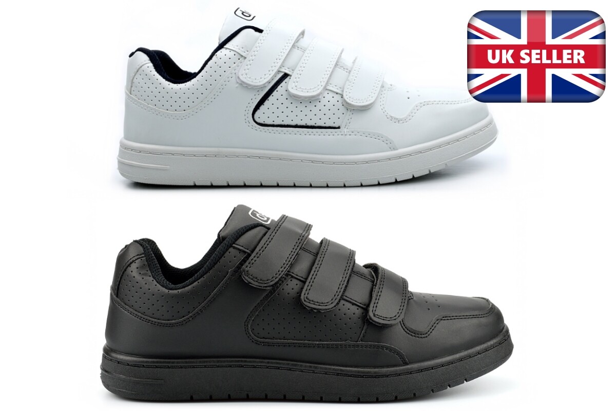 mens white trainers with velcro fastening sale