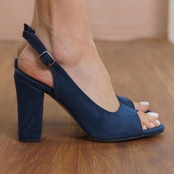 navy suede block heels sale