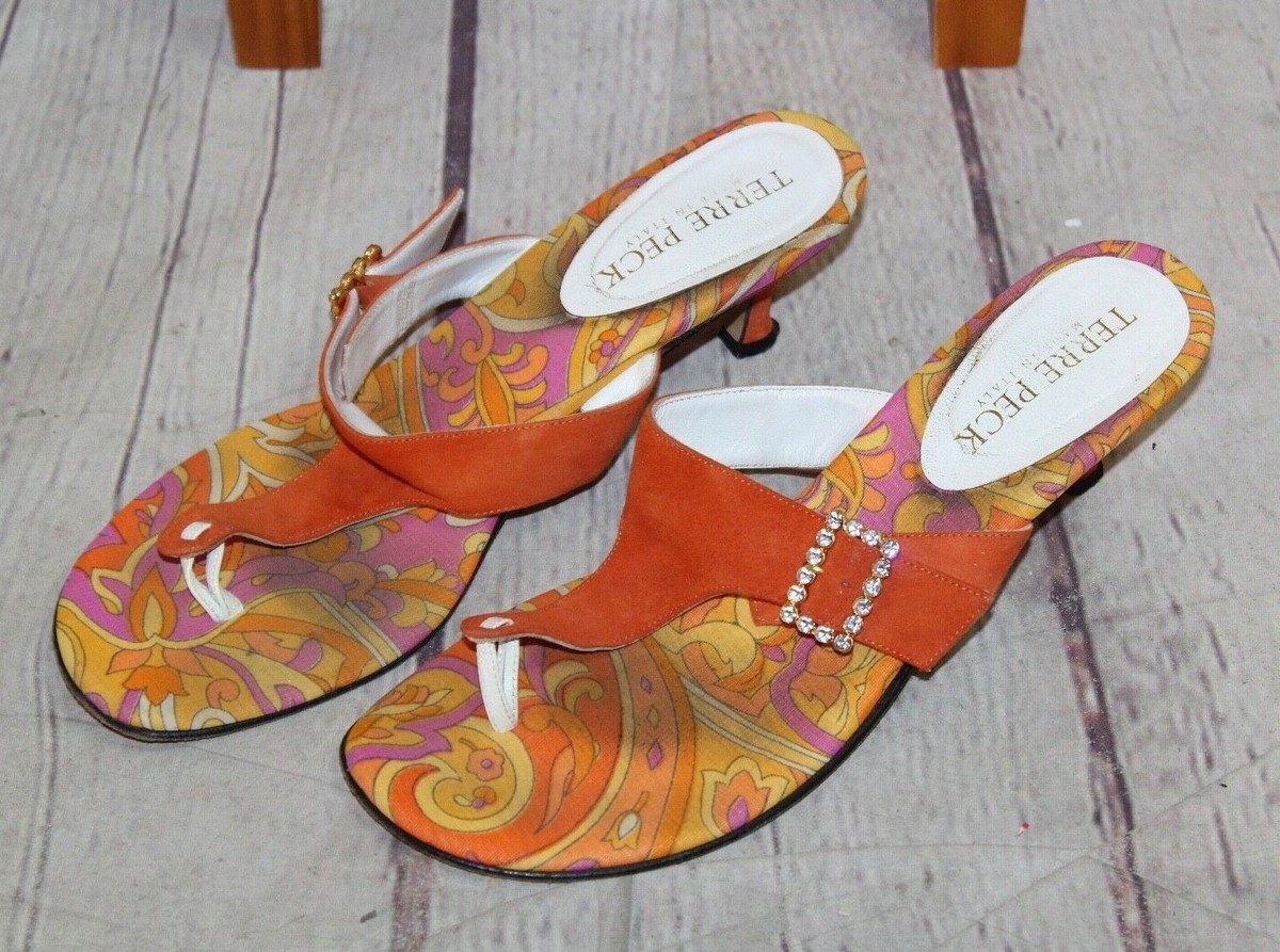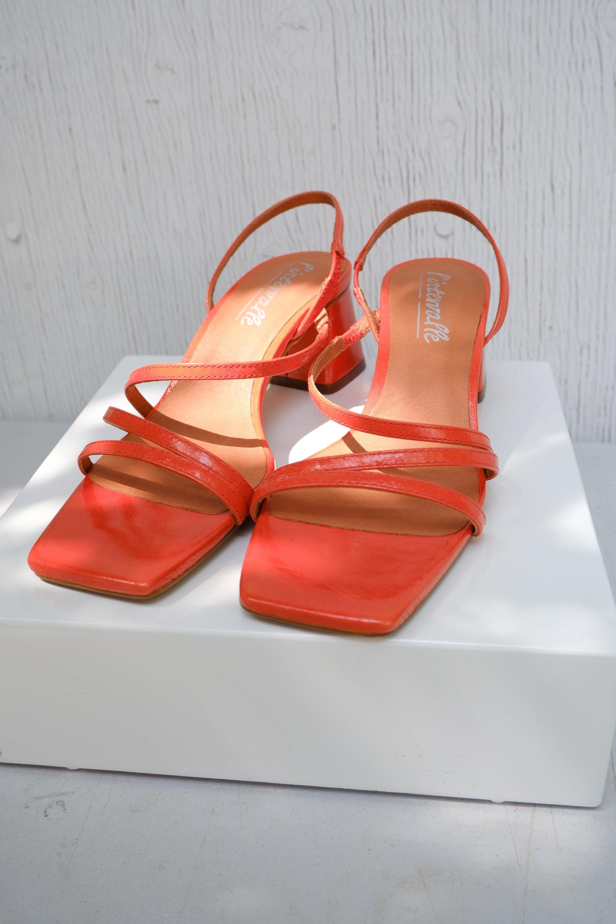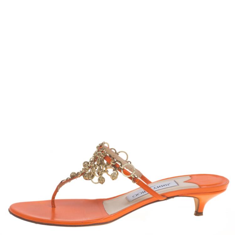 orange kitten heel sandals sale