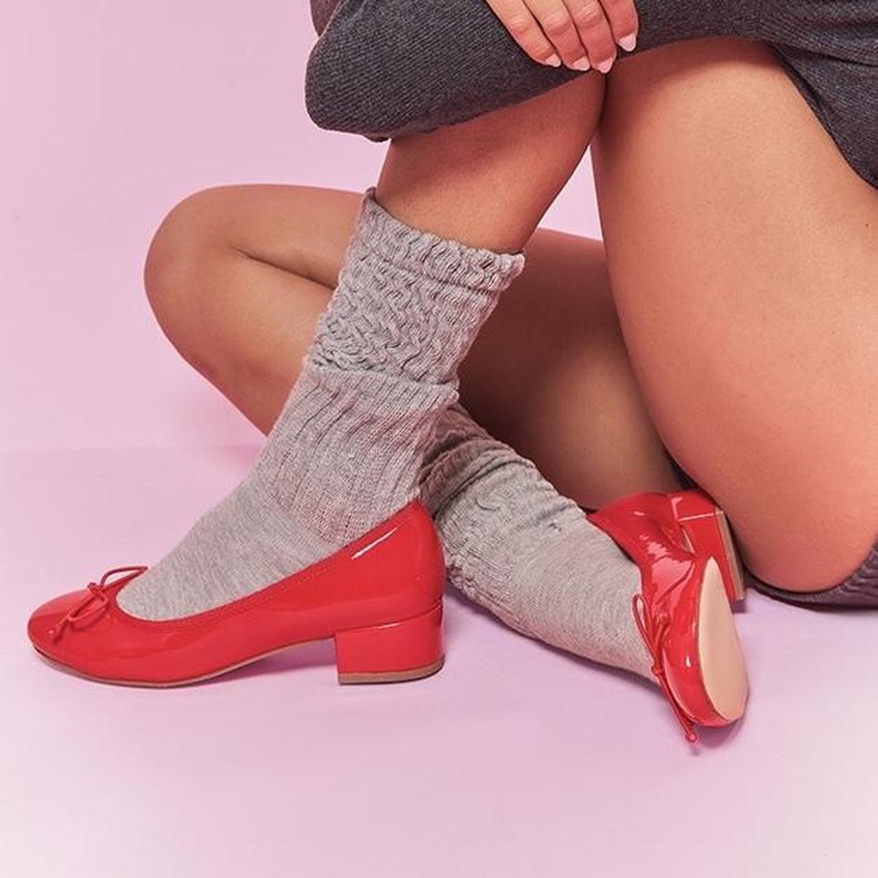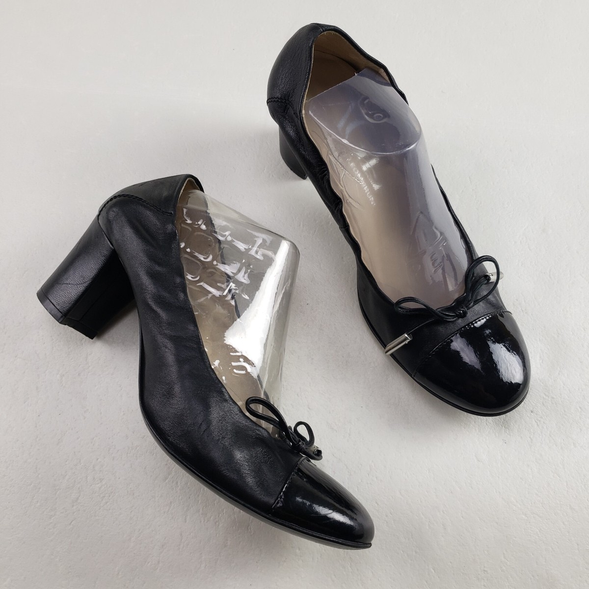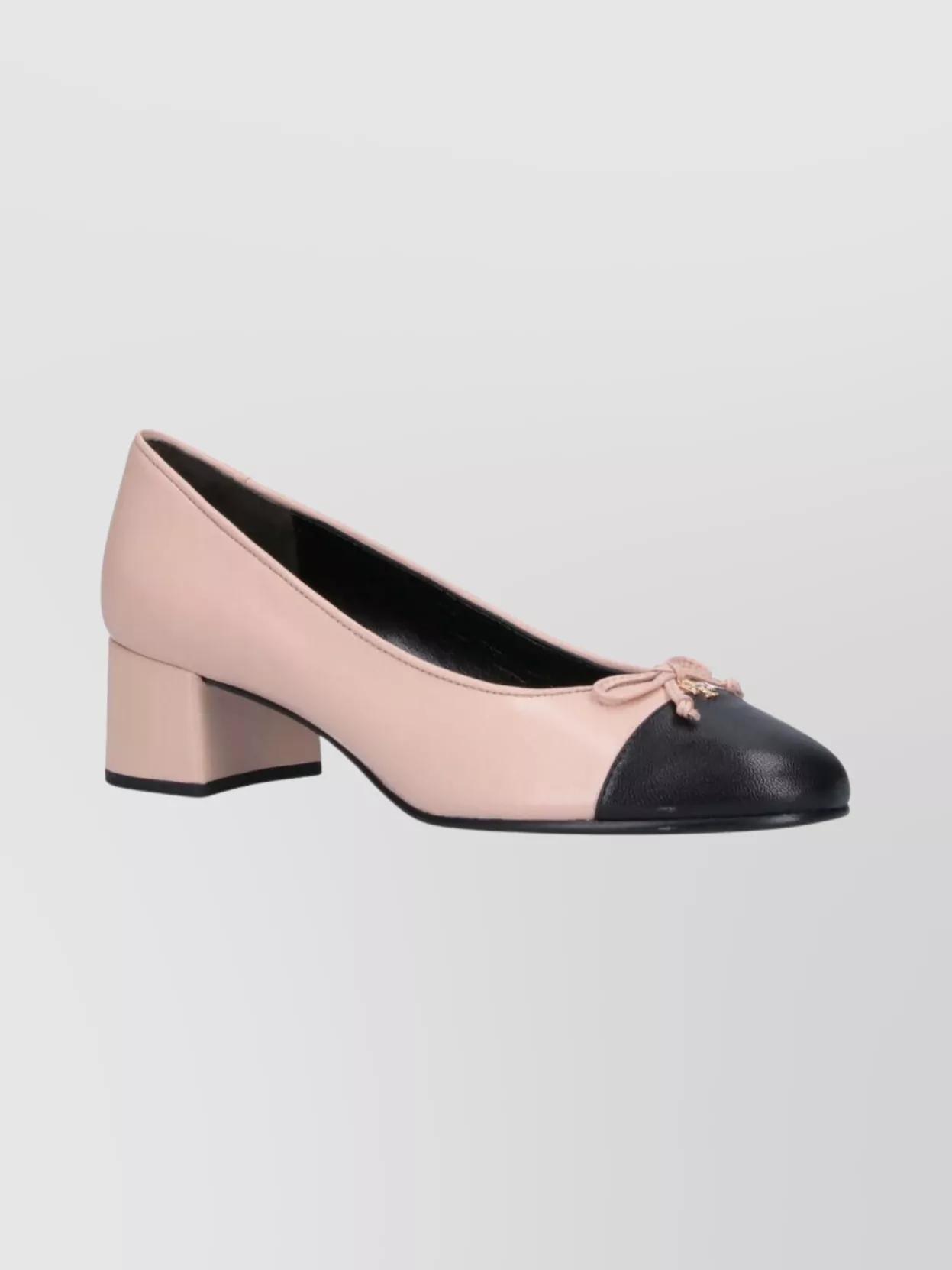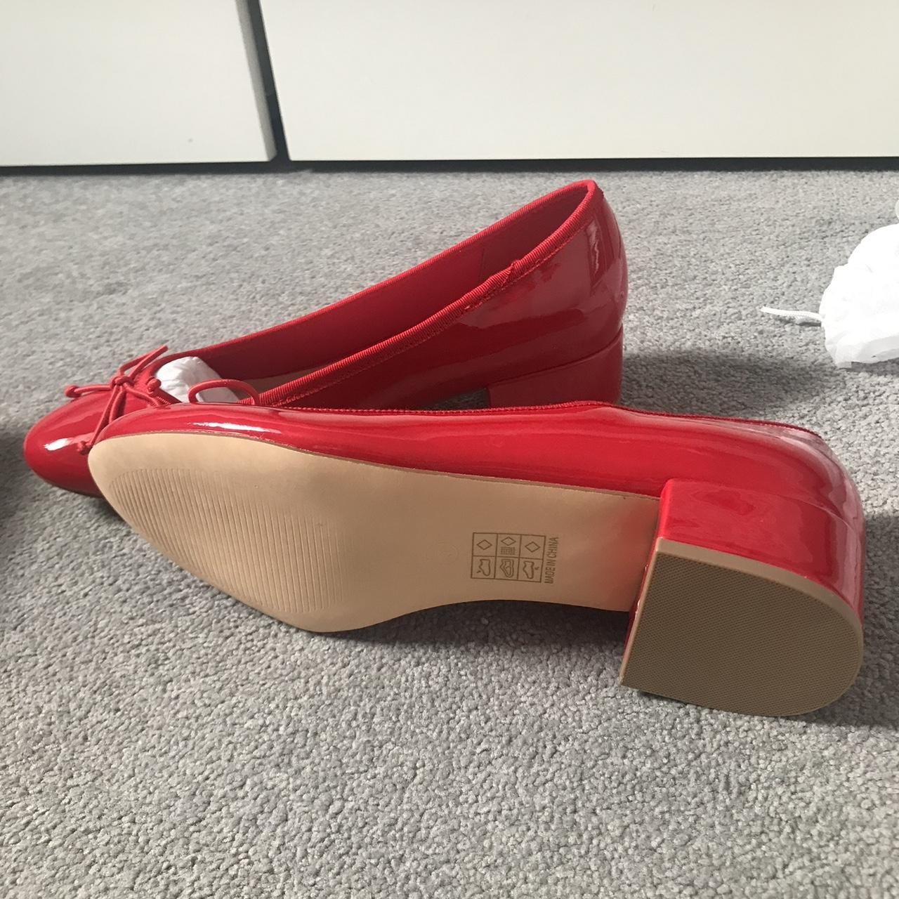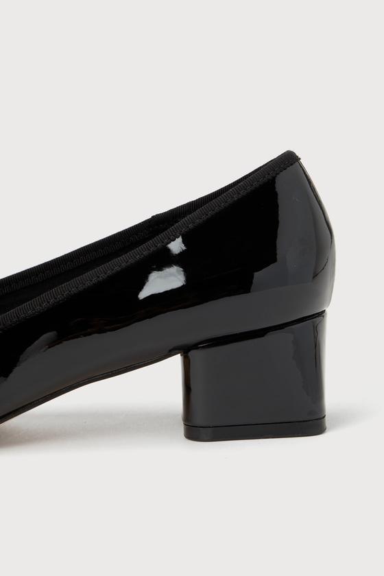 patent block heel ballet pumps with bow detail sale