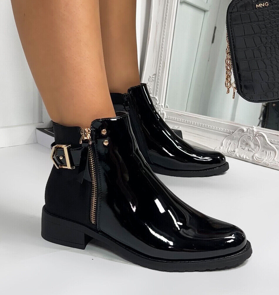 patent flat boots womens sale