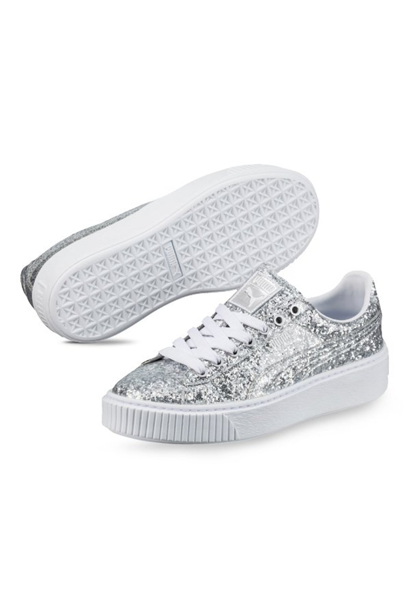 puma basket platform metallic silver sale