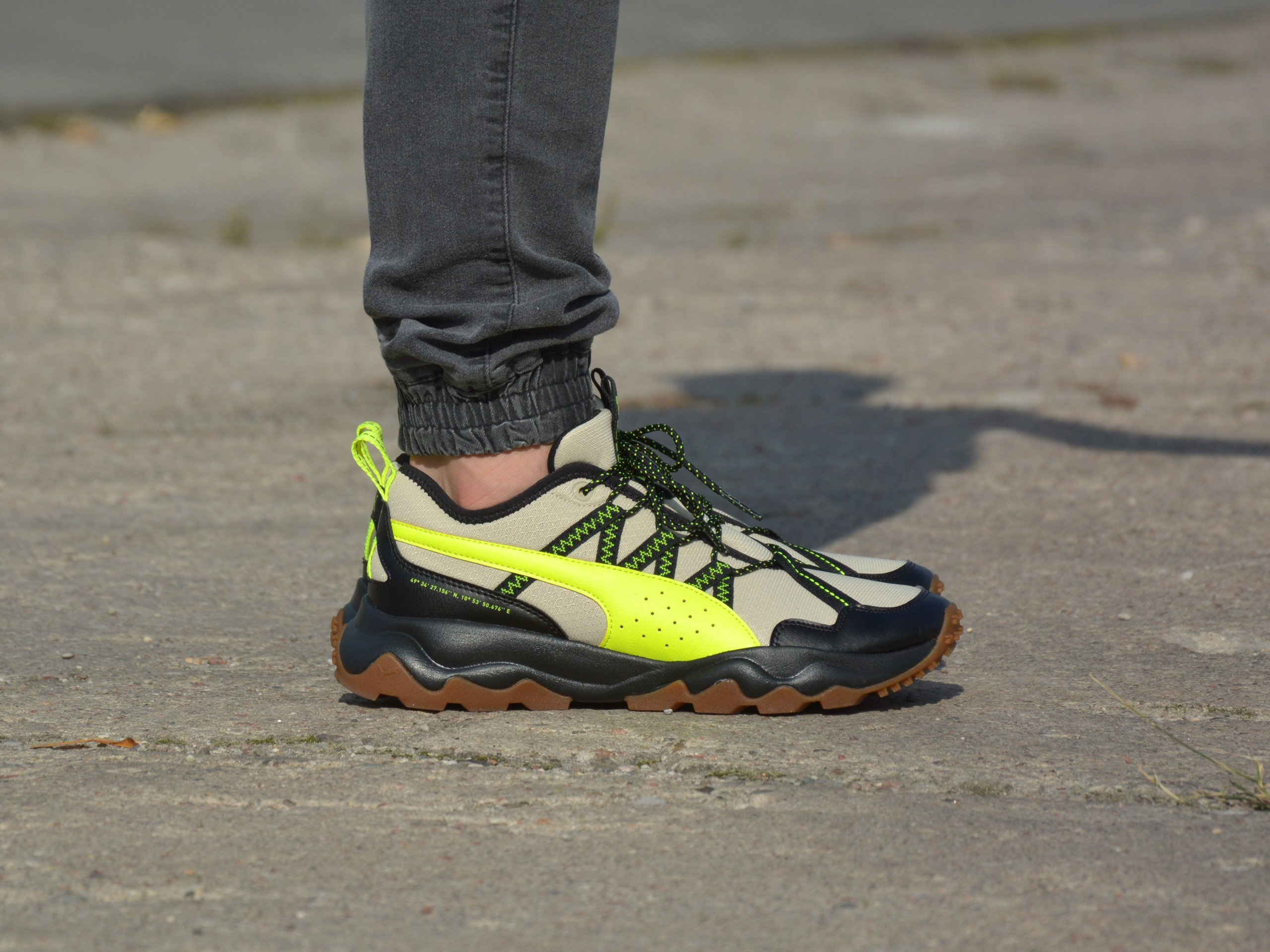 puma ember trail trainers in black & stone sale
