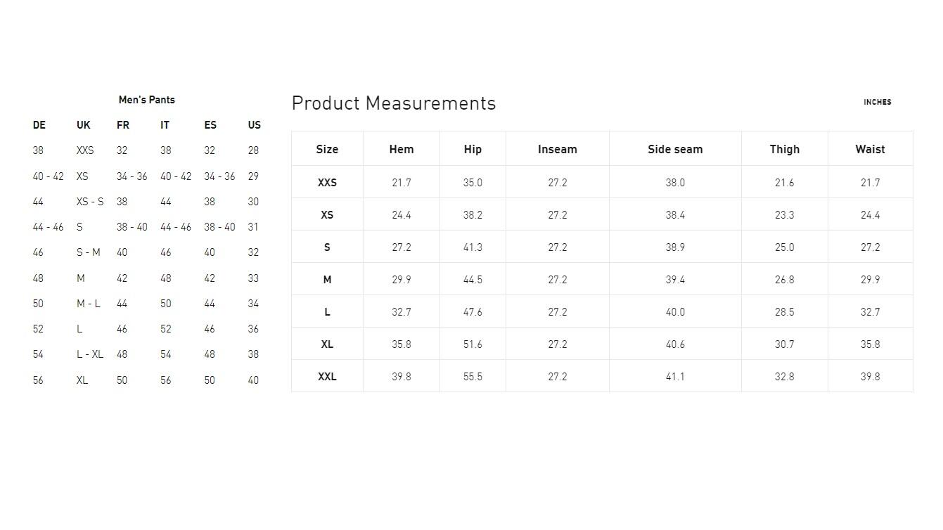 puma mens training pant size chart sale