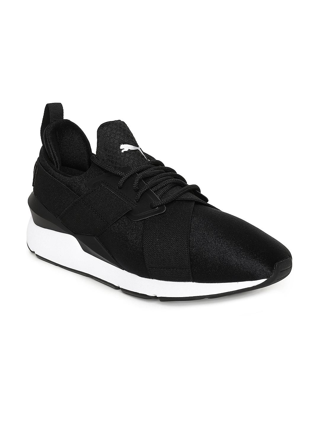 puma muse satin black trainers sale