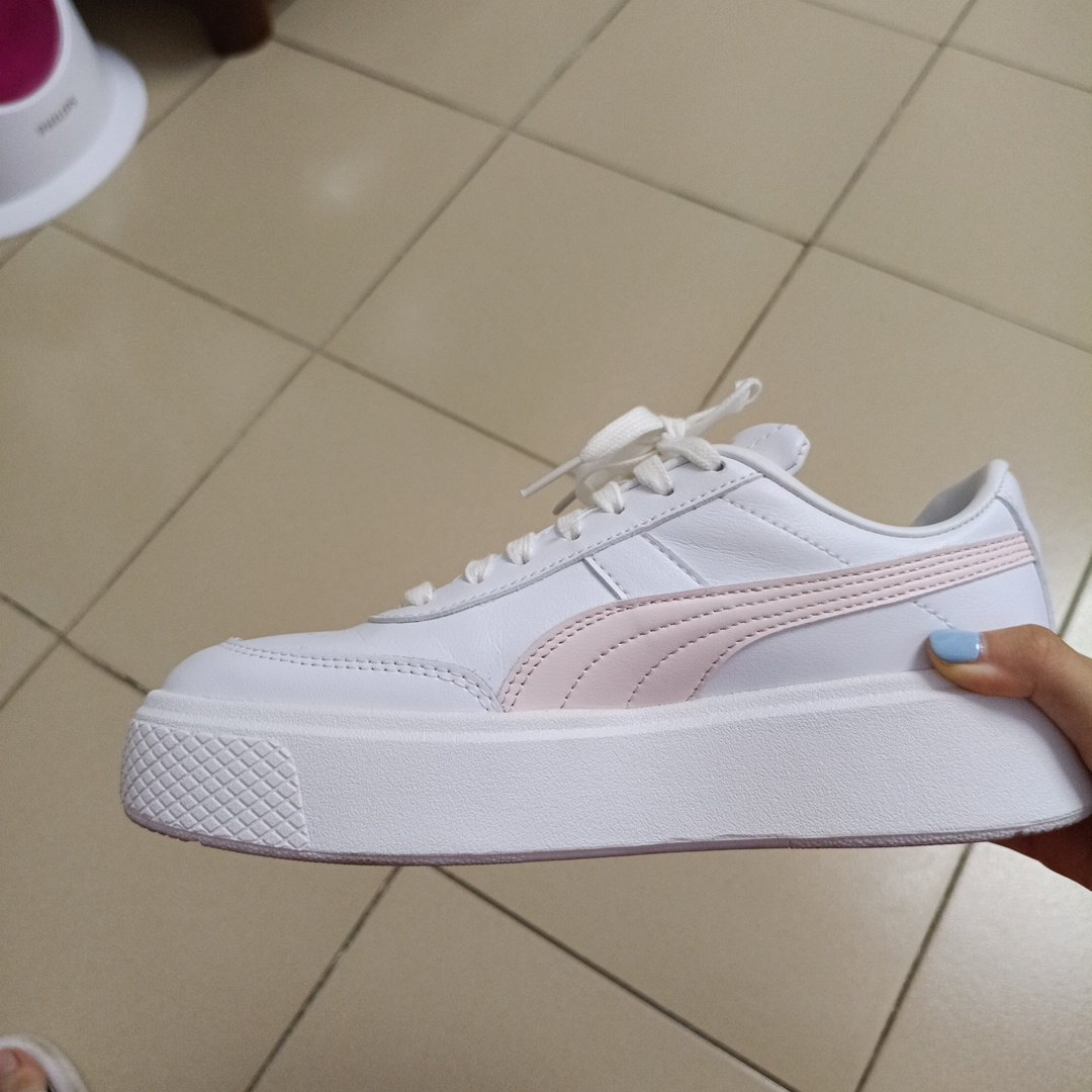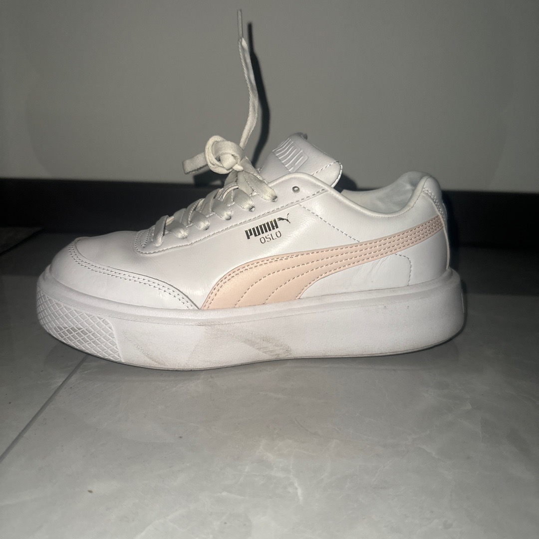 puma oslo maja suede trainers in white and pastel pink sale