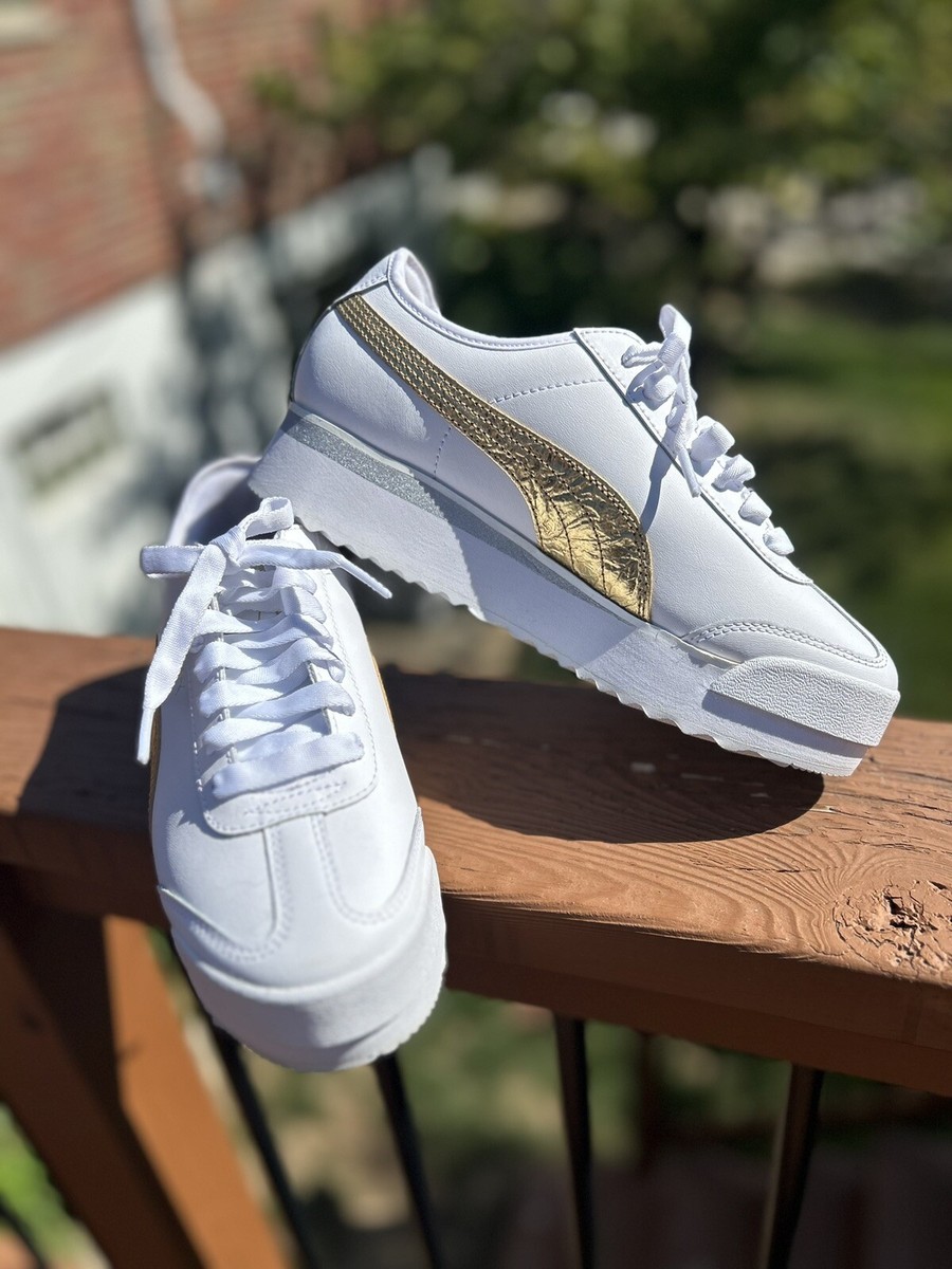 puma roma amor metallic sneakers in white sale