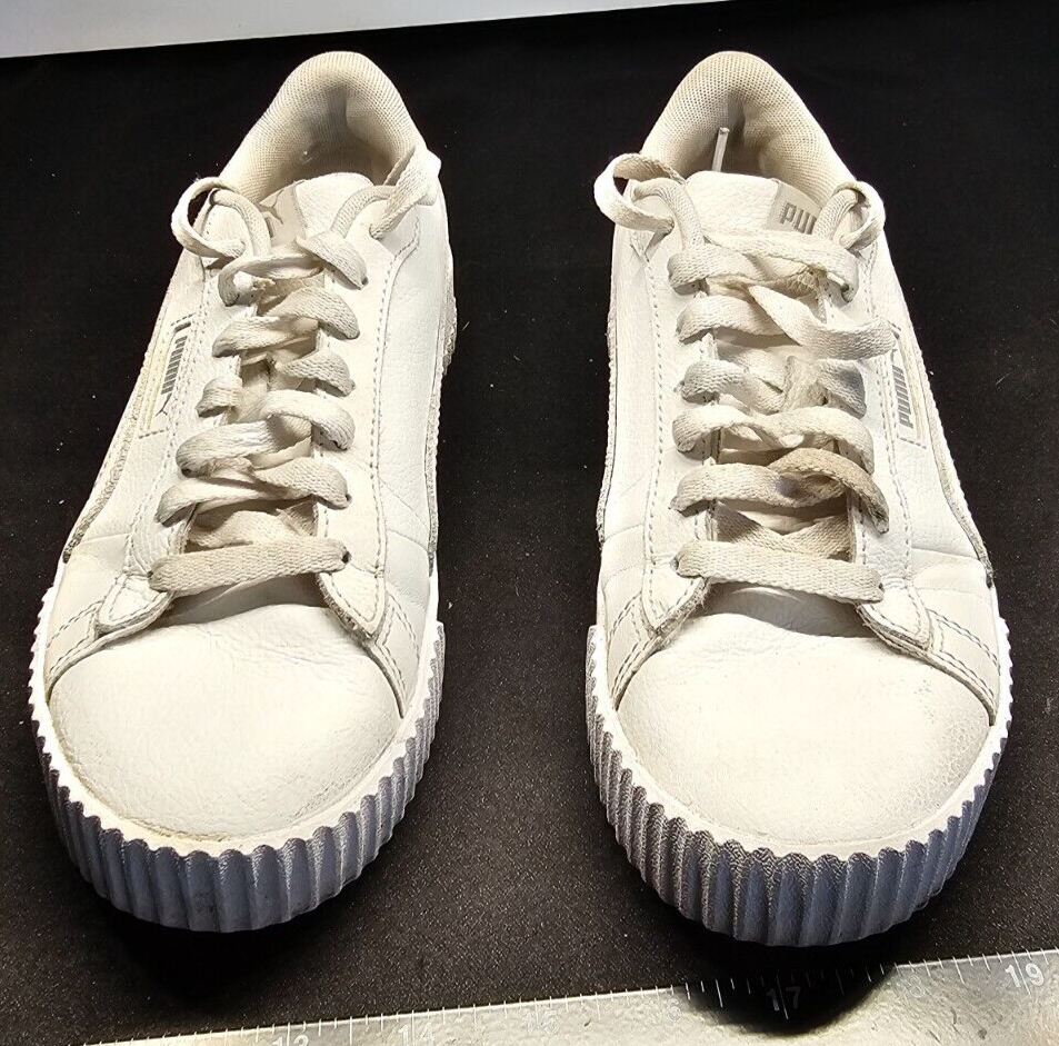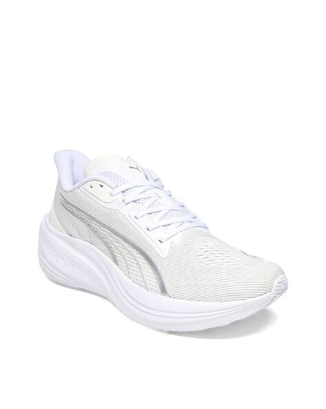 puma round toe lace up sneakers white sale